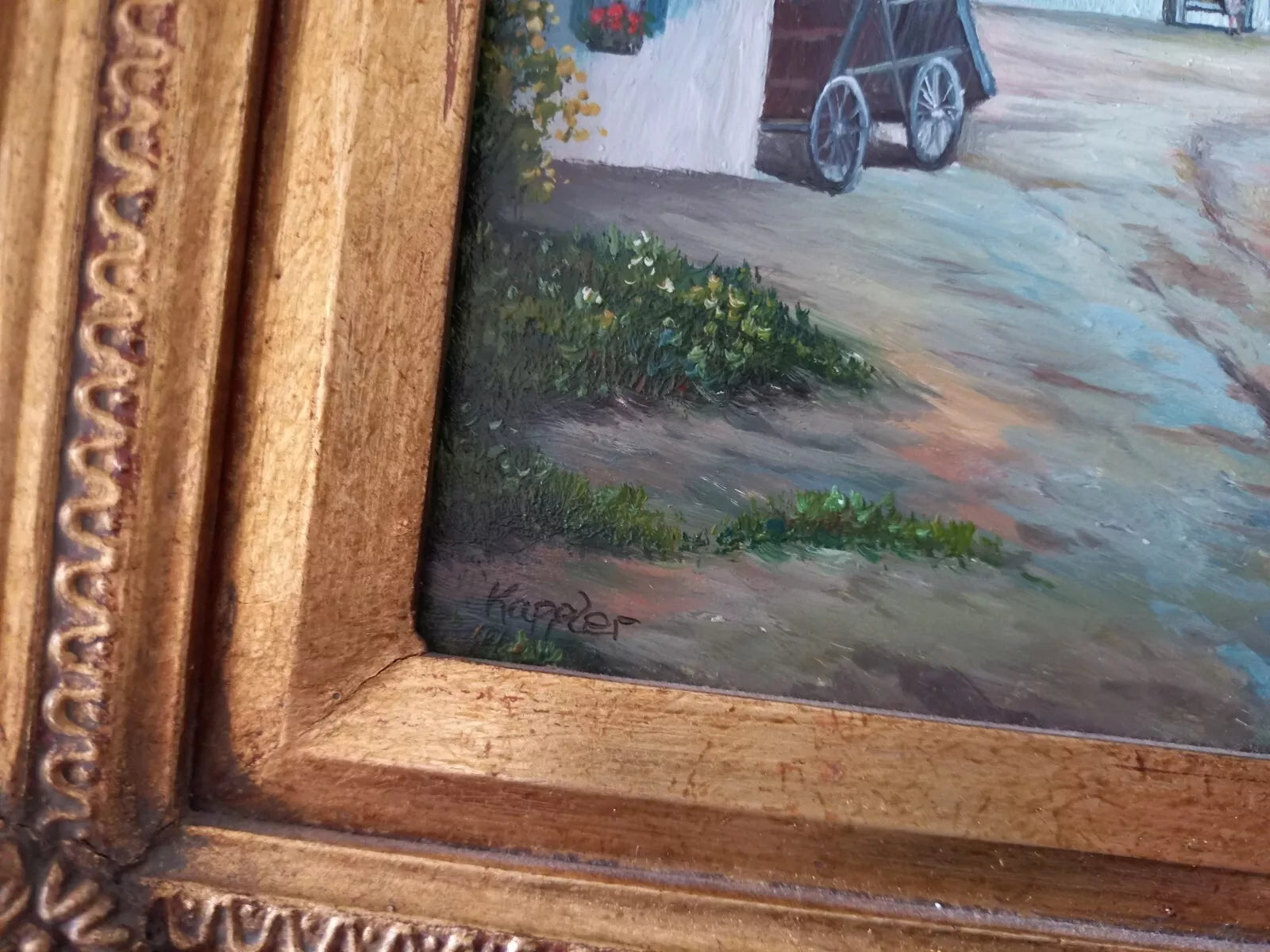 ORIGINAL Ölgemälde auf Holzplatte inkl. wunderschönem Holzrahmen, Motiv: Fachwerkhäuser/Dorfleben, Signiert unten links: Kappler, Größen: ca. 39x34 cm (mit Rahmen) / ca. 23,5x19 cm (ohne Rahmen, sichtbarer Teil des Gemäldes), Zustand dem Alter entsprechend (siehe Fotos) - aus tierfreiem Nichtraucherhaushalt! Fotos sind Bestandteil des Angebots!
