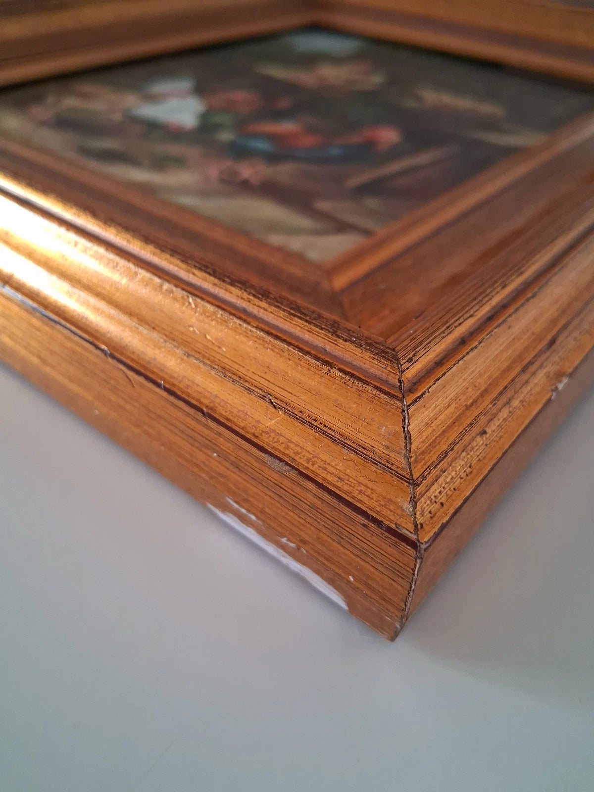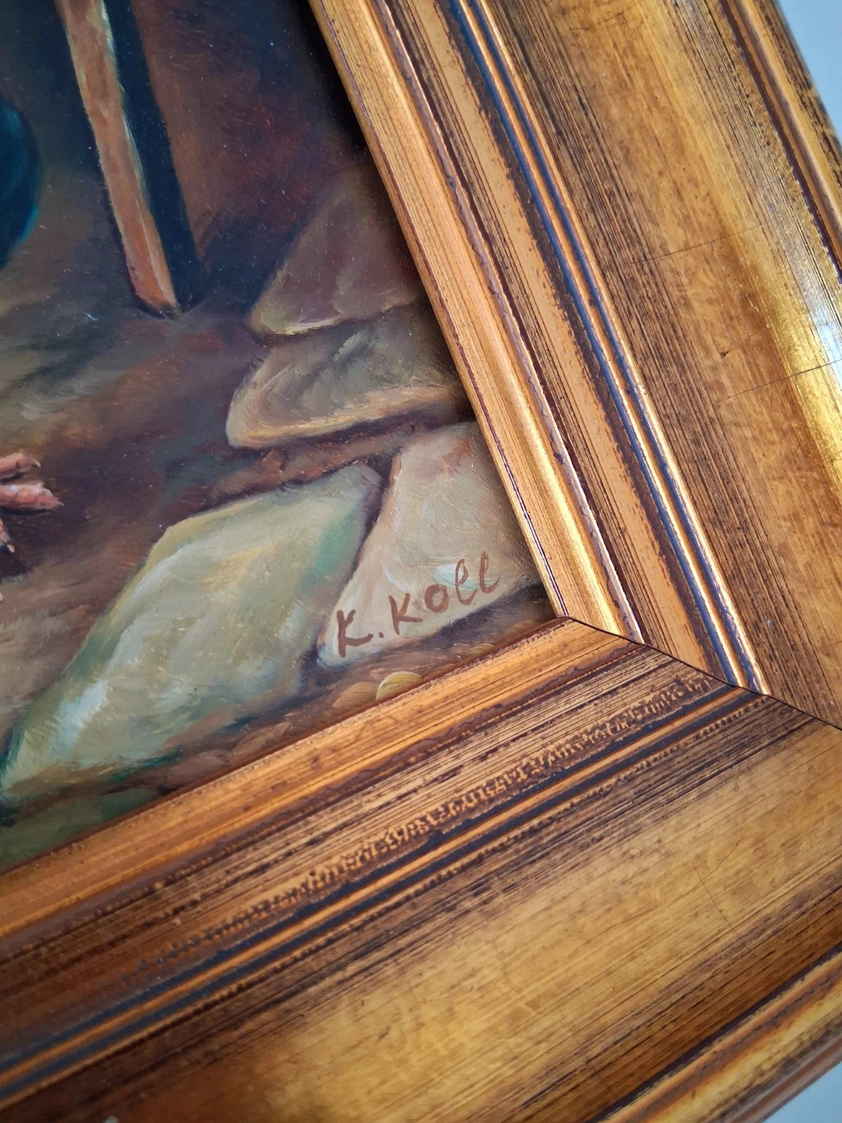 ORIGINAL Ölgemälde auf Holzplatte inkl. schönem Rahmen, Motiv: Hühner/Bauernhof, Signiert unten rechts: K. Koll, Größen: ca. 31,5x36 cm (mit Rahmen) / ca. 19x24 cm (ohne Rahmen, sichtbarer Teil des Gemäldes), Zustand dem Alter entsprechend (Gebrauchsspuren am Rahmen -> siehe Fotos) - aus tierfreiem Nichtraucherhaushalt! Fotos sind Bestandteil des Angebots!