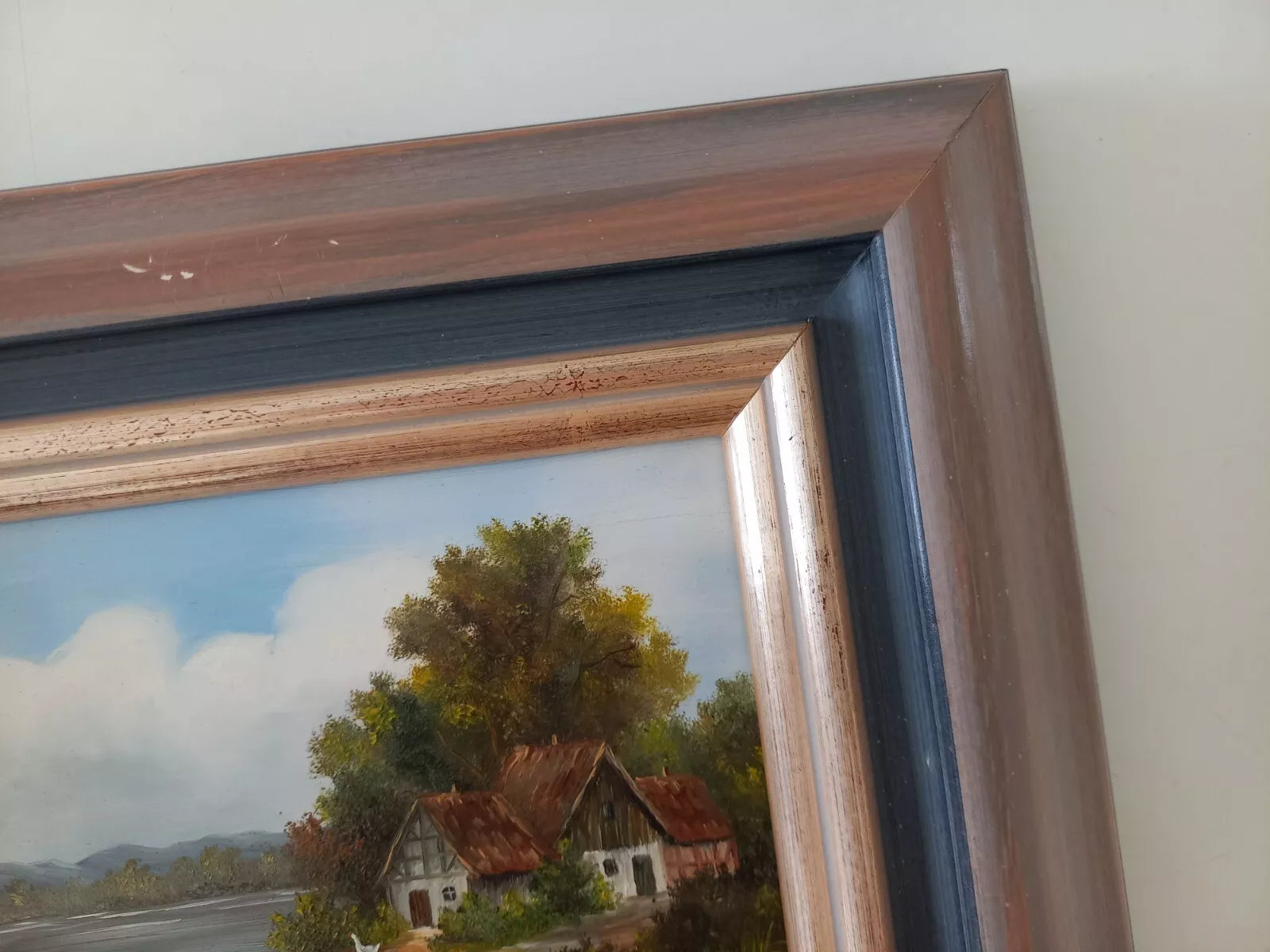 ORIGINAL Ölgemälde auf Holzplatte | Landschaft / Bauernhaus am See | Signiert: VON PAPEN