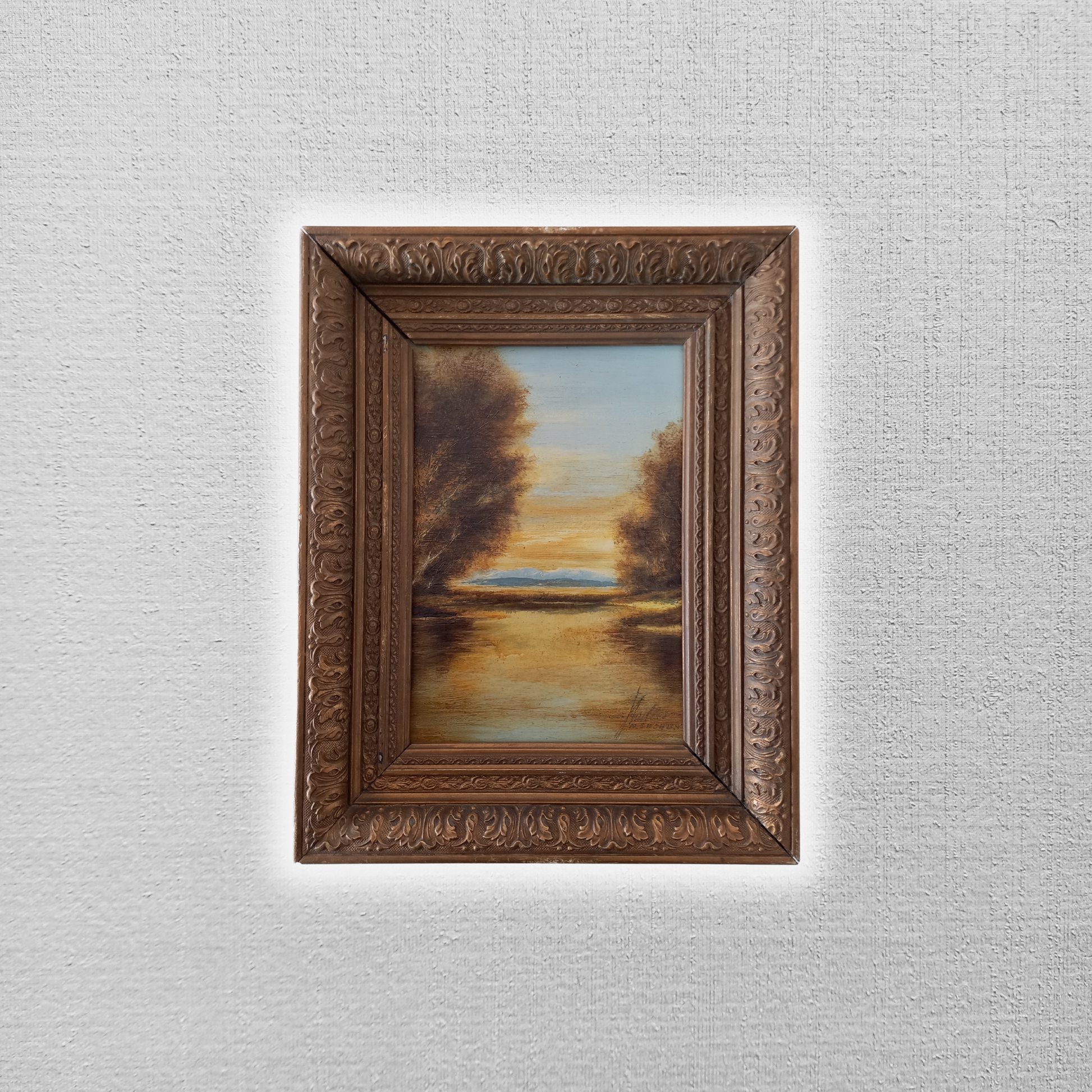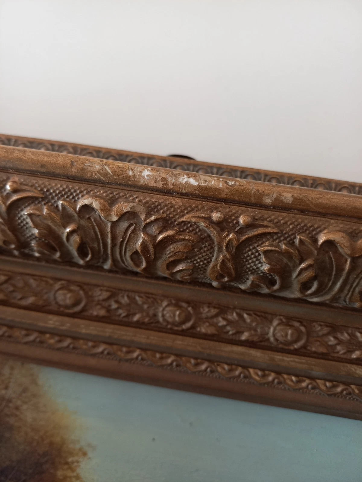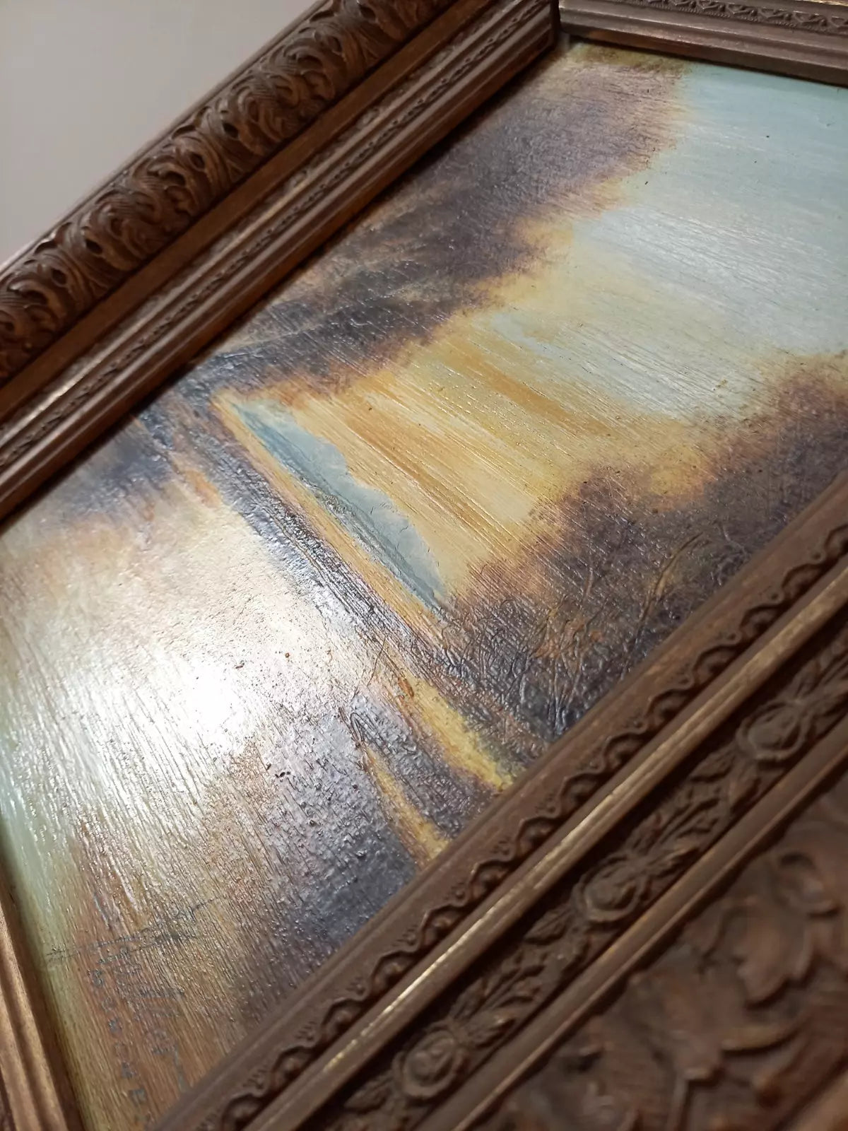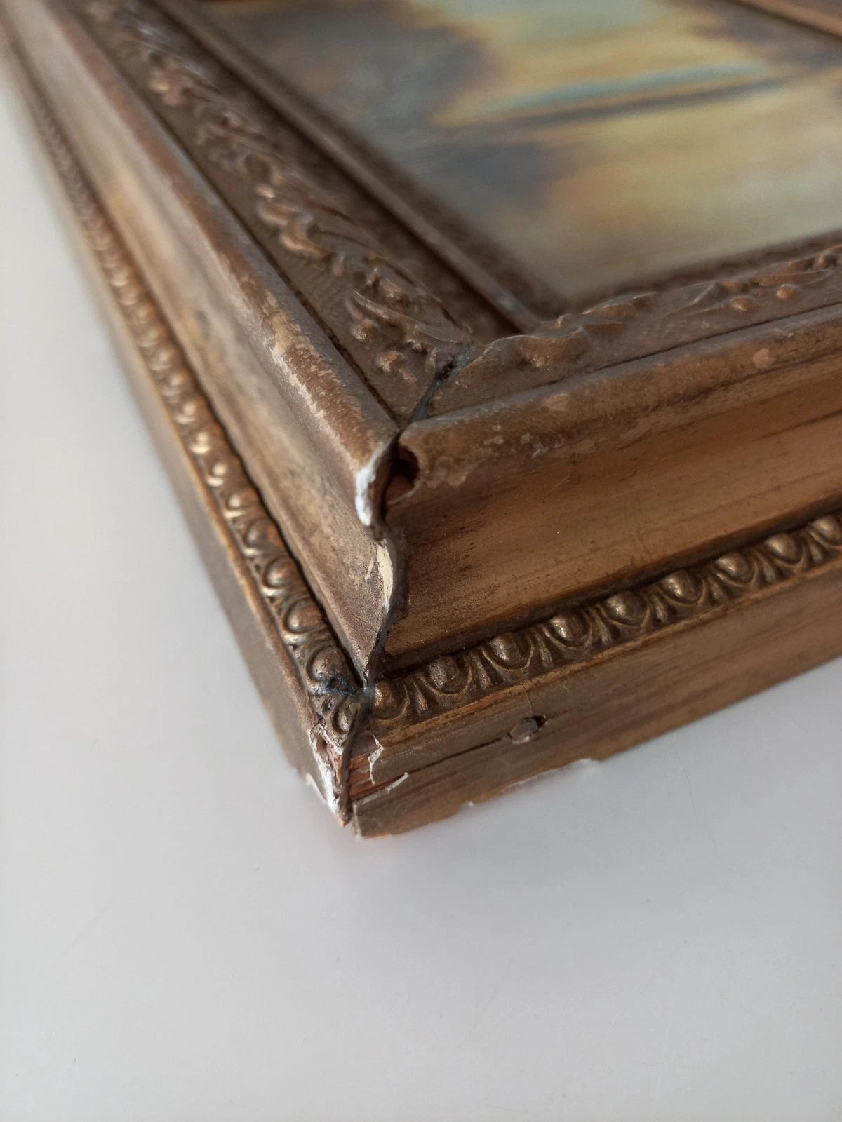 ORIGINAL Ölgemälde auf Holzplatte inkl. Rahmen, Motiv: Romantische Alpenlandschaft, Signiert unten rechts: Stadler / München, Größen: ca. 30x38 cm (mit Rahmen) / ca. 17x24,5 cm (ohne Rahmen, sichtbarer Teil des Gemäldes), Zustand dem Alter entsprechend (Gebrauchsspuren + Abplatzer am Rahmen -> siehe Fotos) - aus tierfreiem Nichtraucherhaushalt! Fotos sind Bestandteil des Angebots!