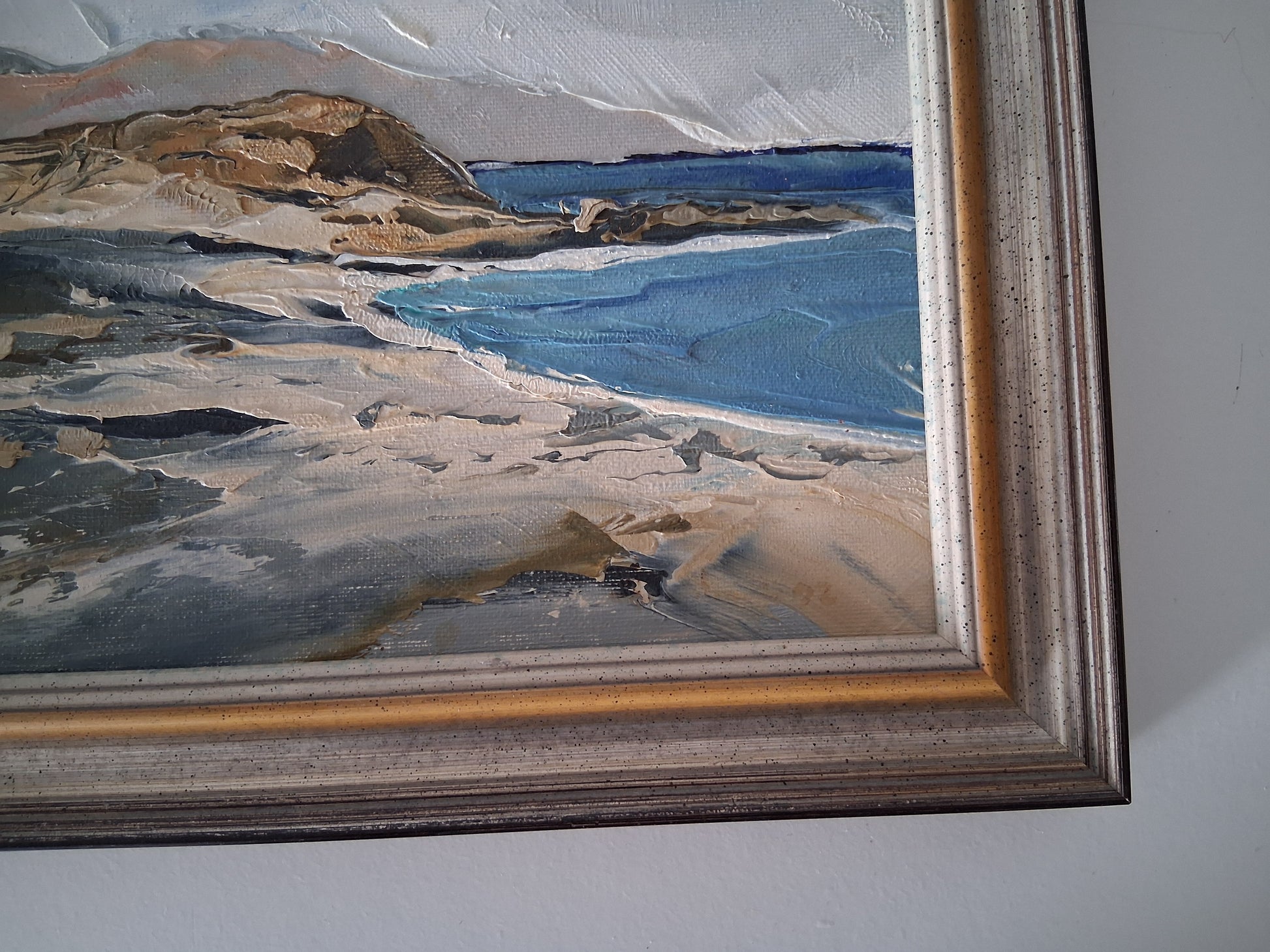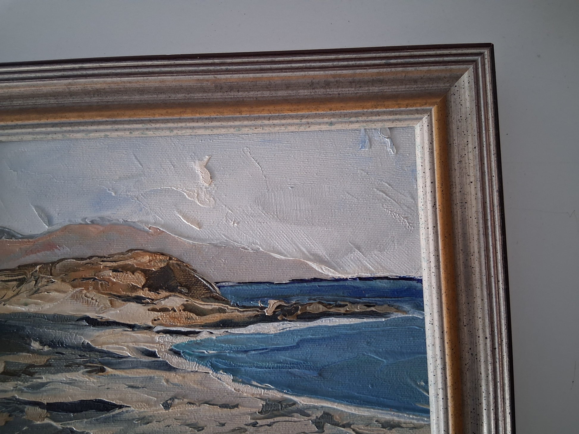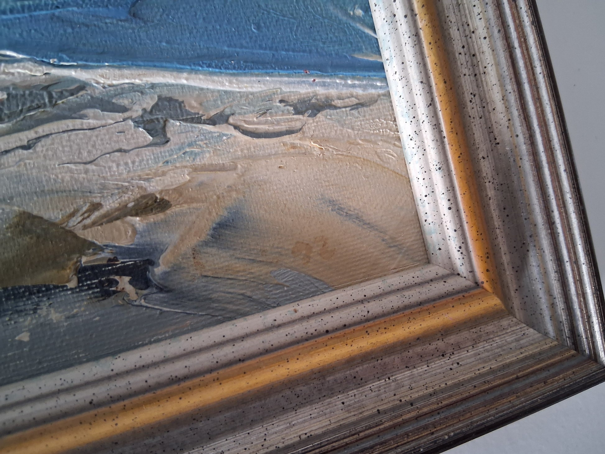ORIGINAL Ölgemälde auf Karton inkl. Rahmen | Küstenlandschaft / Strand / Meer | 31x26 cm | Signiert