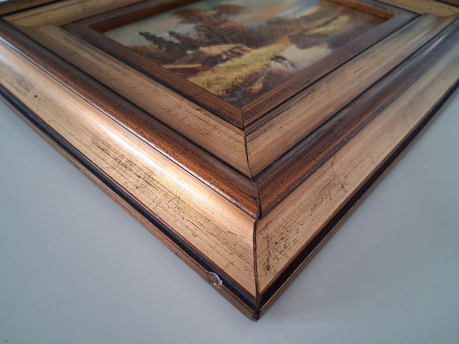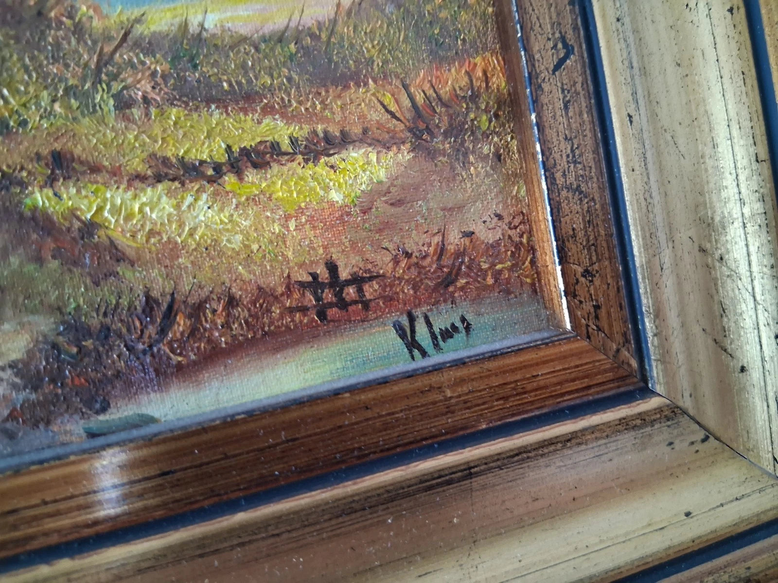 ORIGINAL Ölgemälde auf Karton inkl. Rahmen | Landschaft / Bauernhaus | 29x24 cm | Signiert