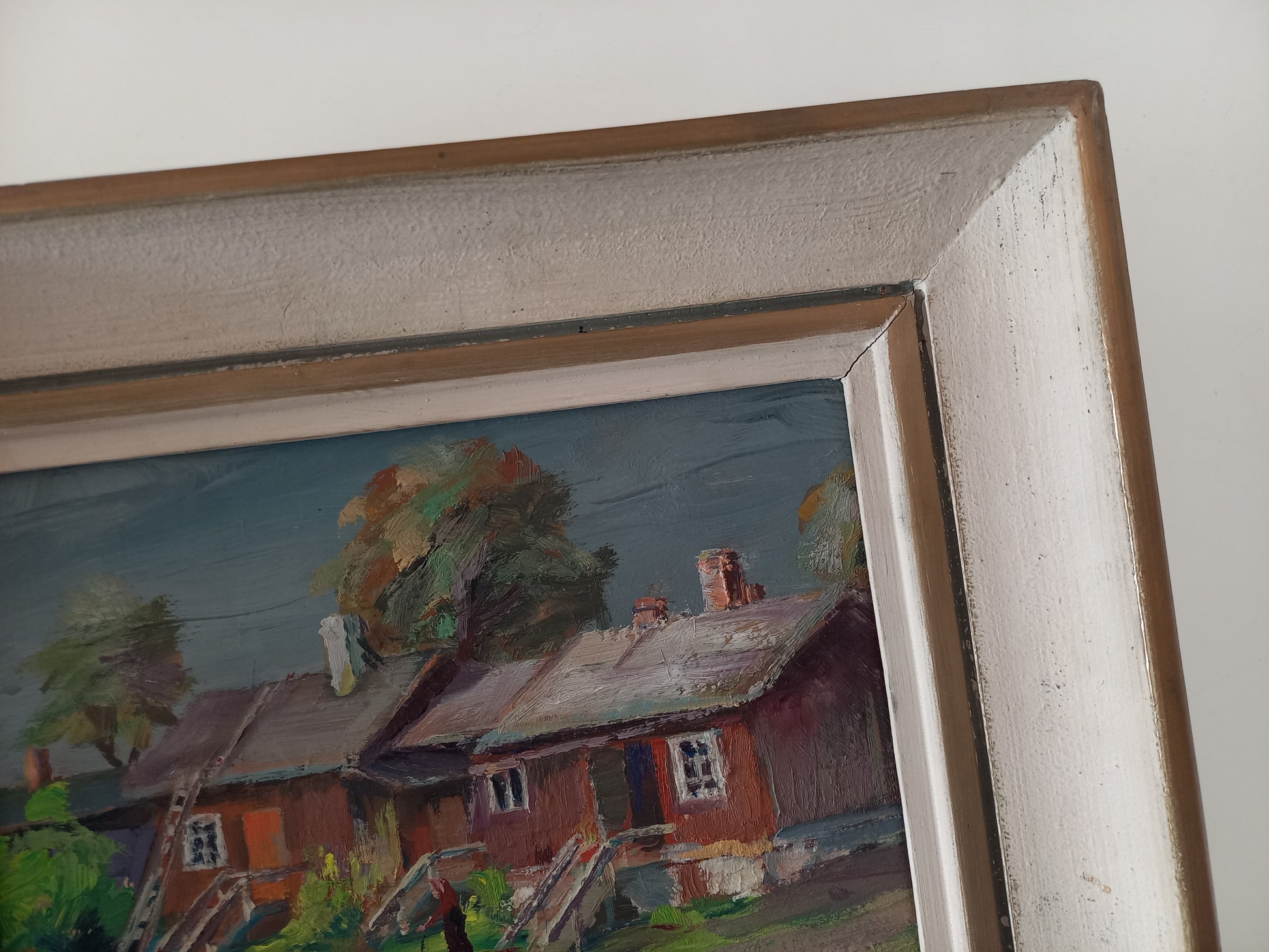 ORIGINAL Ölgemälde auf Karton inkl. Rahmen | Landschaft / Bauernhaus mit Figur | Signiert
