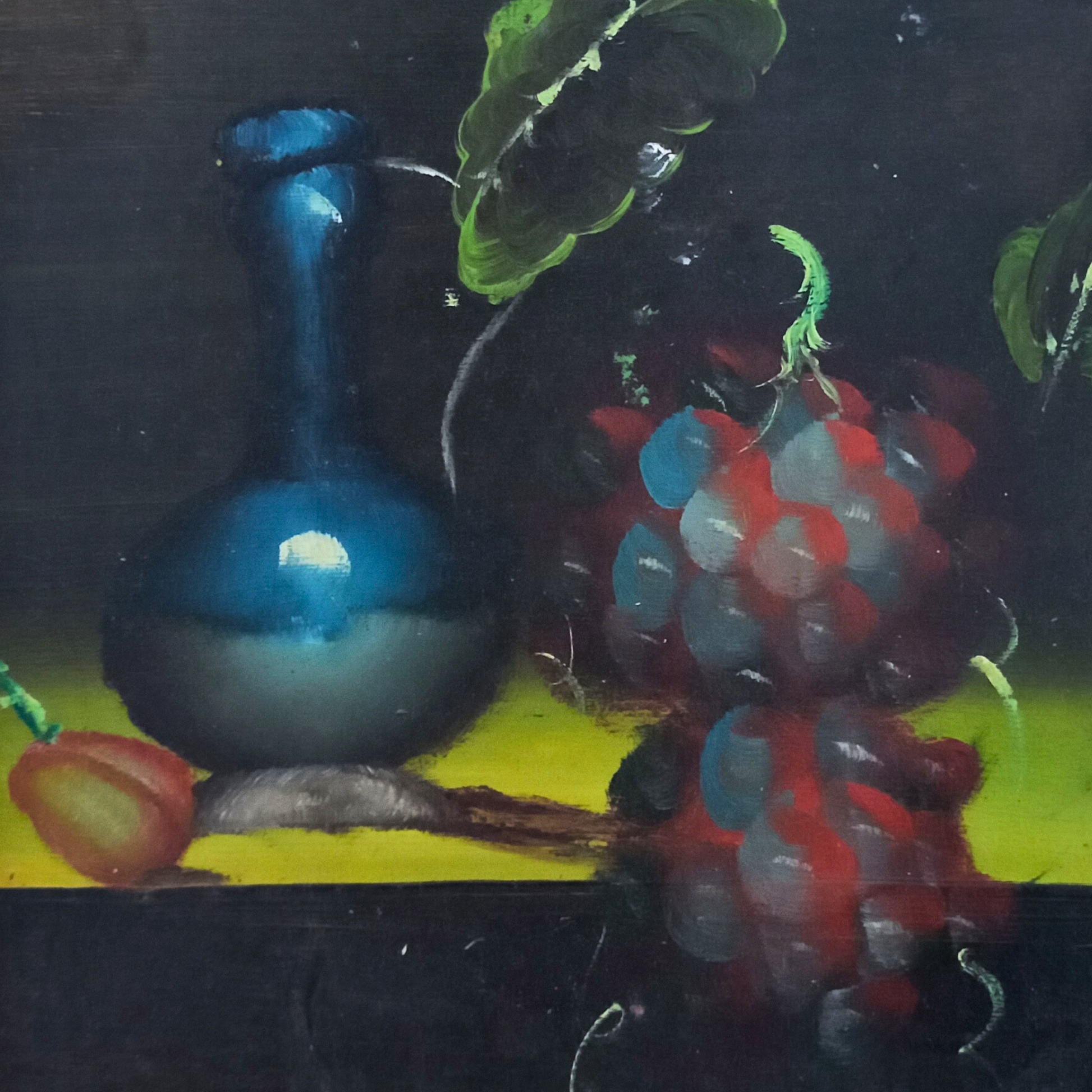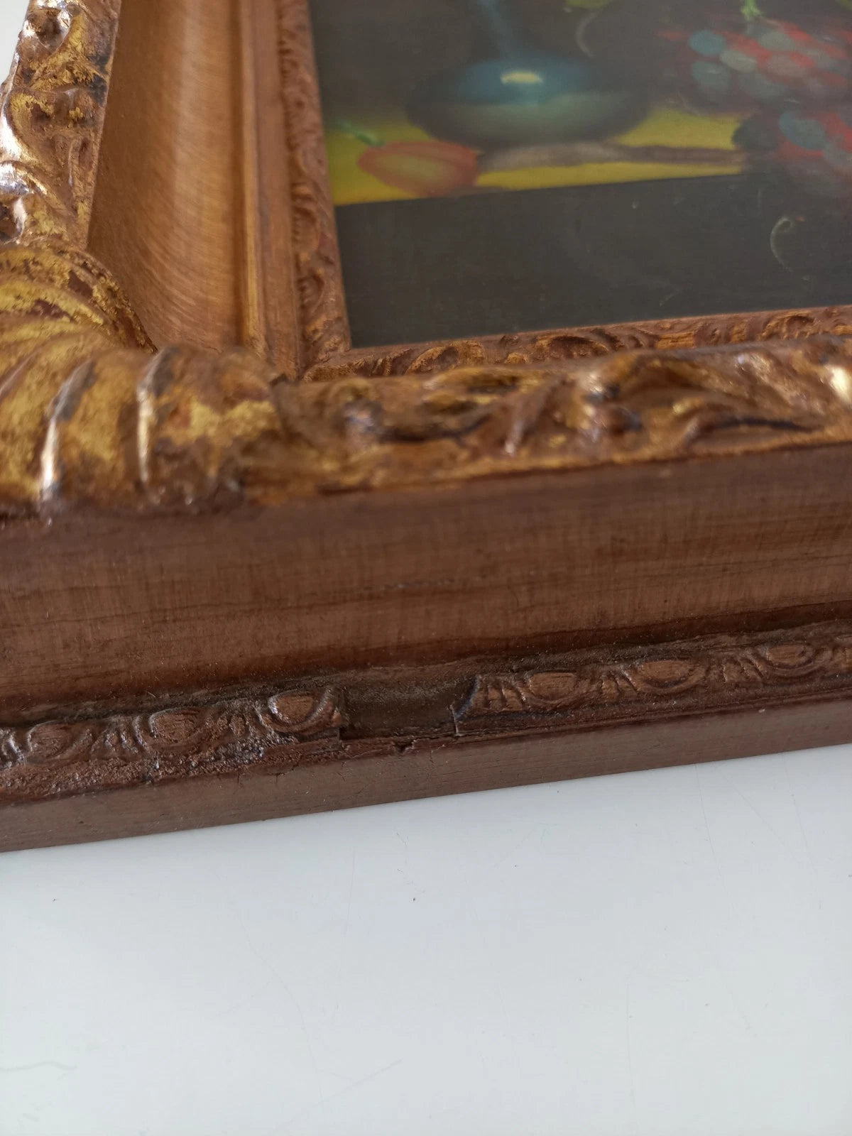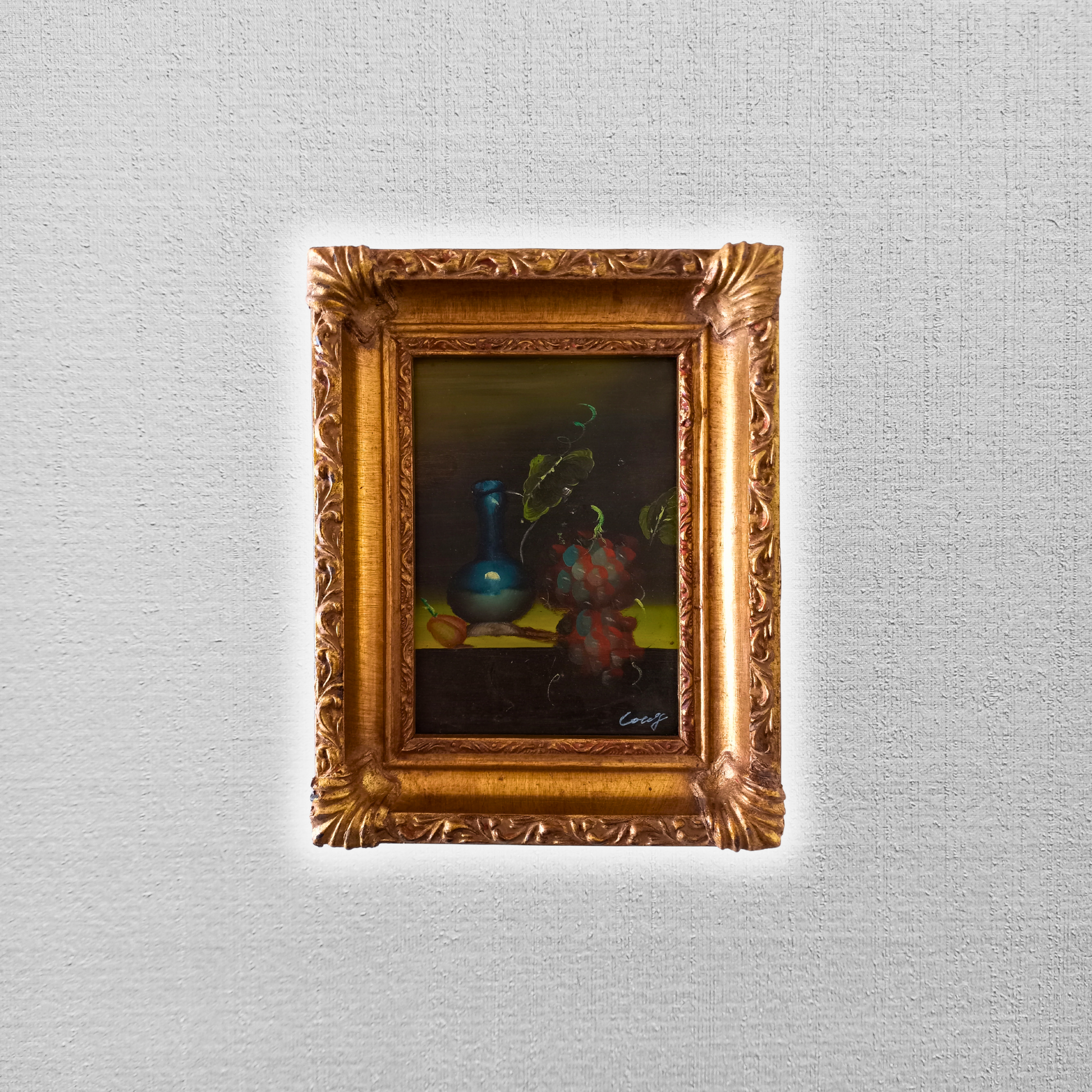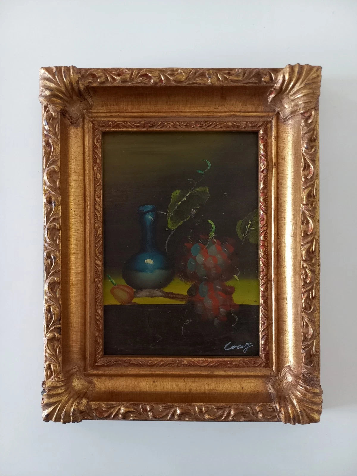 ORIGINAL Ölgemälde auf Karton inkl. Rahmen | Stillleben / Weintrauben | 21x26 cm | Signiert