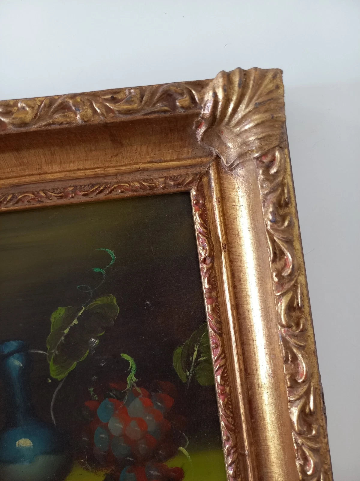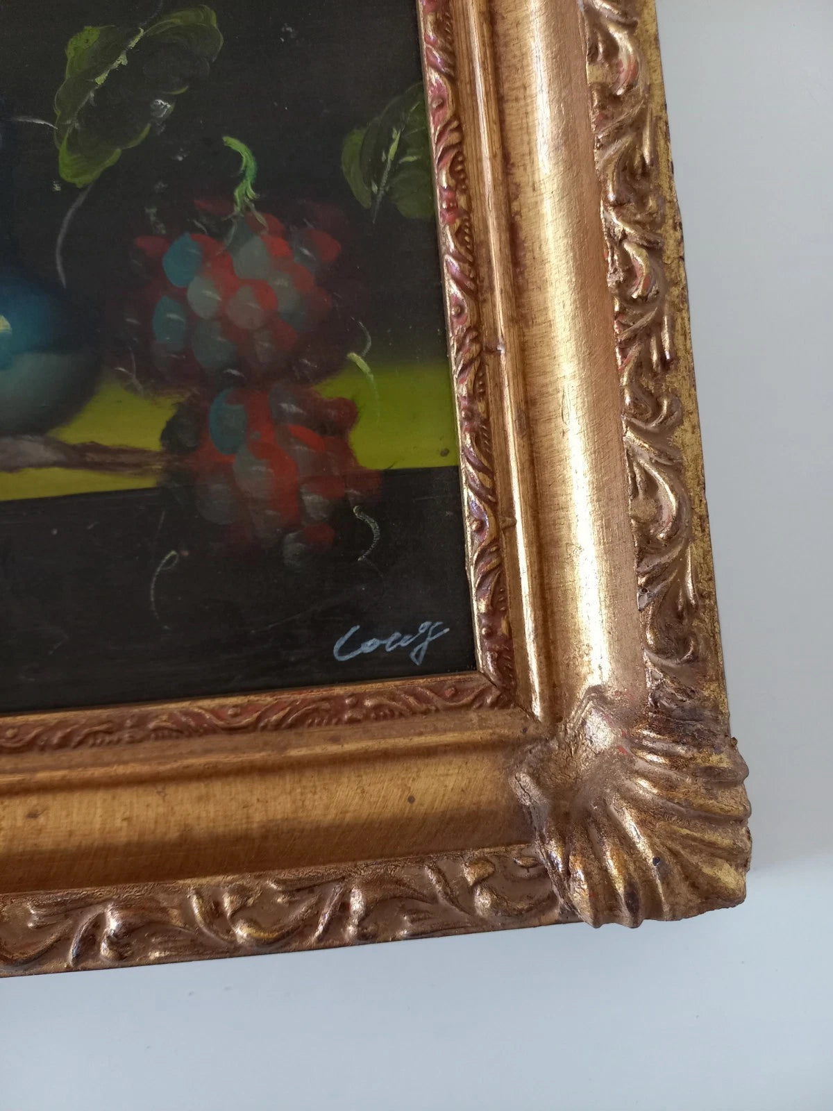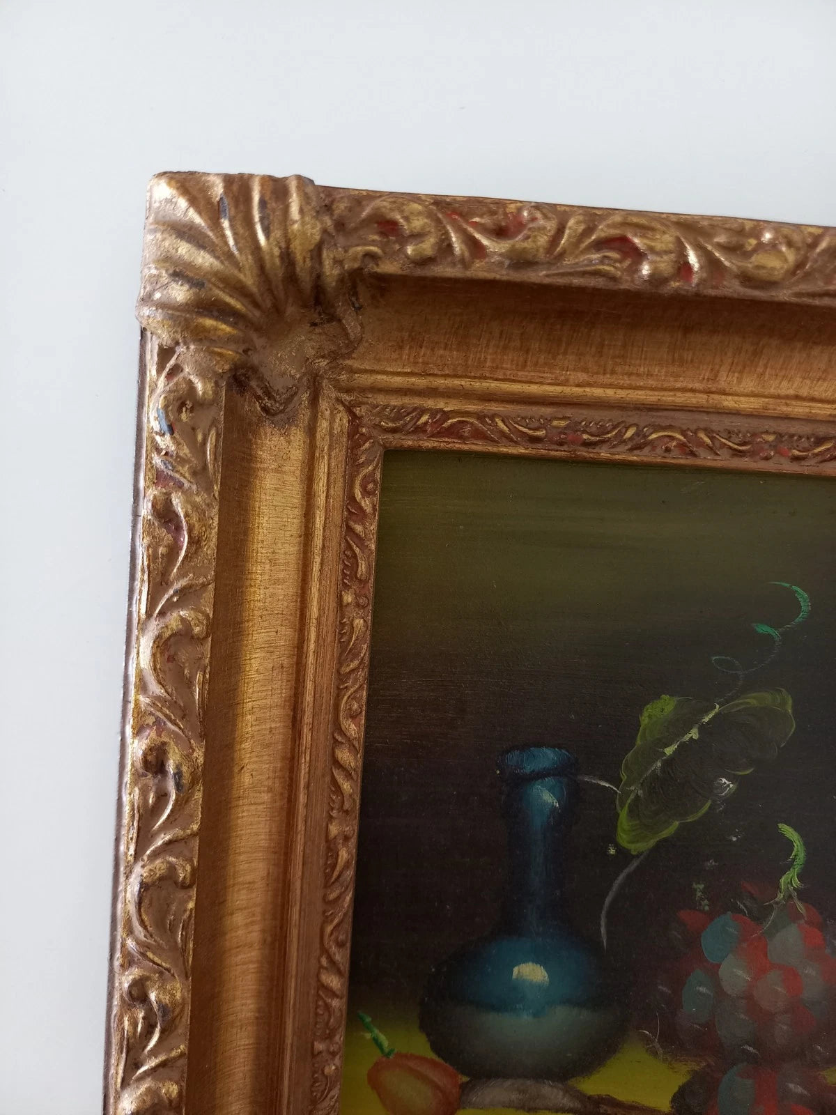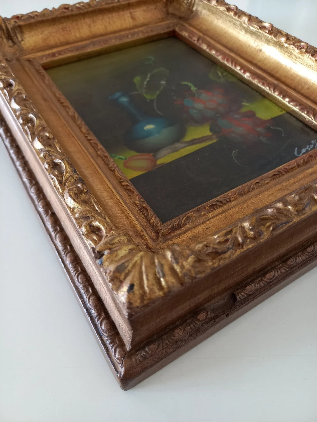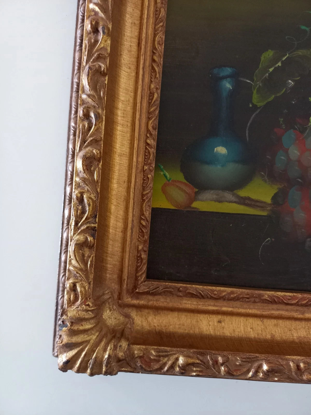 ORIGINAL Ölgemälde auf Karton inkl. Rahmen | Stillleben / Weintrauben | 21x26 cm | Signiert