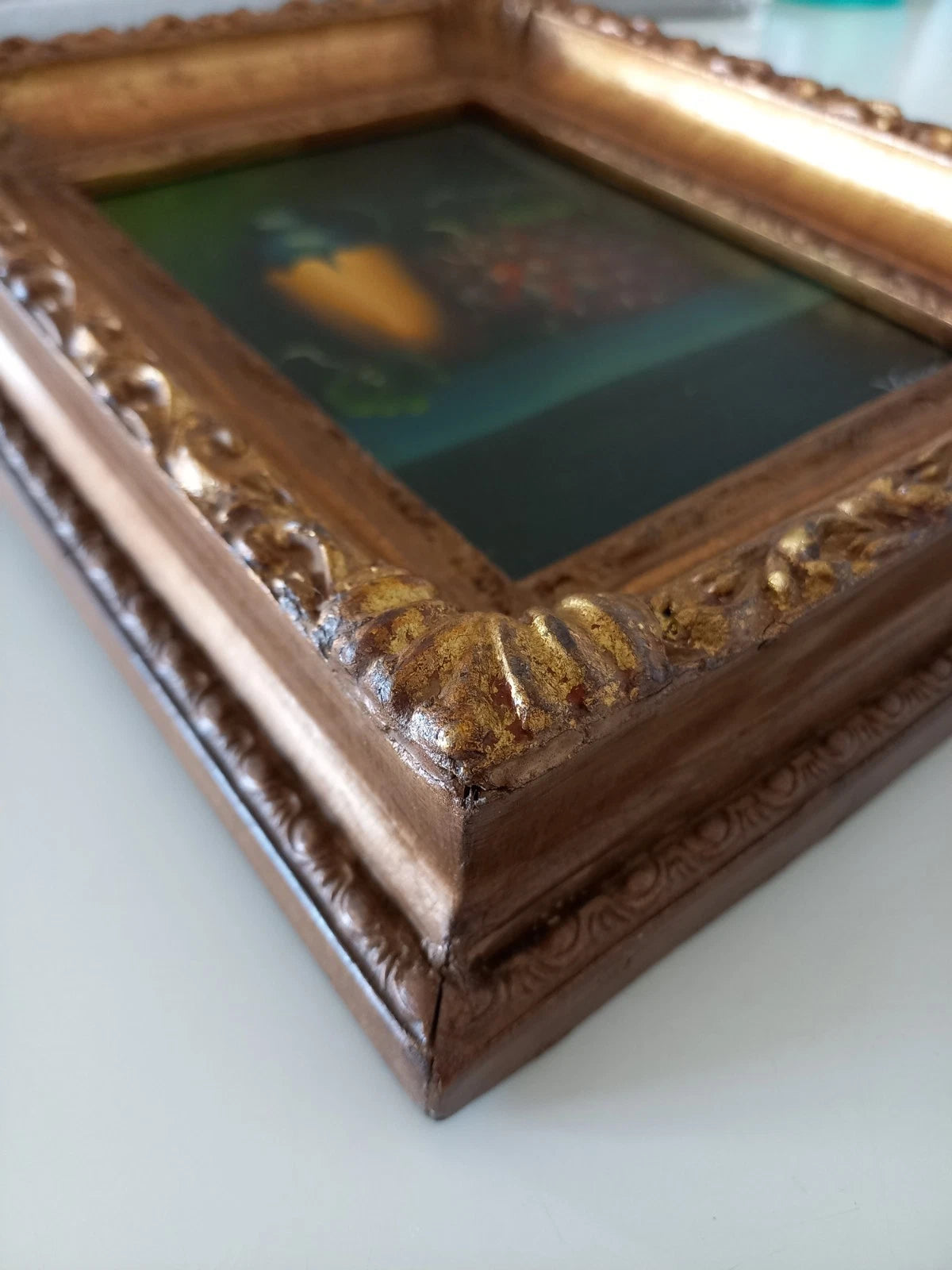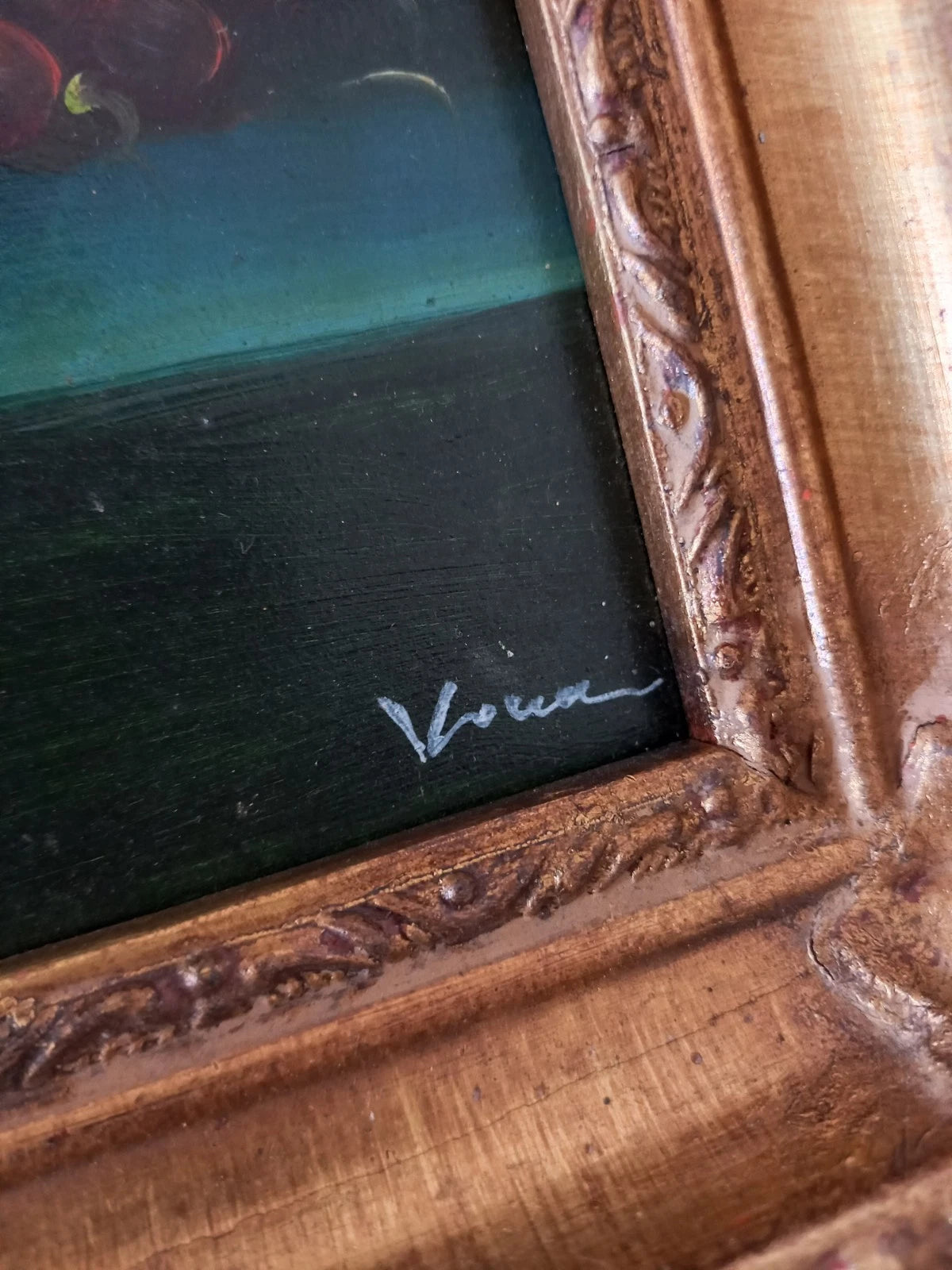 ORIGINAL Ölgemälde auf Karton inkl. antikem Holzrahmen, Motiv: Stillleben/Obst/Weintrauben, Signiert unten rechts: (unleserlich), Größen: ca. 21x26 cm (mit Rahmen) / ca. 11,5x16,5 cm (ohne Rahmen, sichtbarer Teil des Gemäldes), Zustand dem Alter entsprechend (Gebrauchsspuren am Rahmen -> siehe Fotos) - aus tierfreiem Nichtraucherhaushalt! Fotos sind Bestandteil des Angebots!
