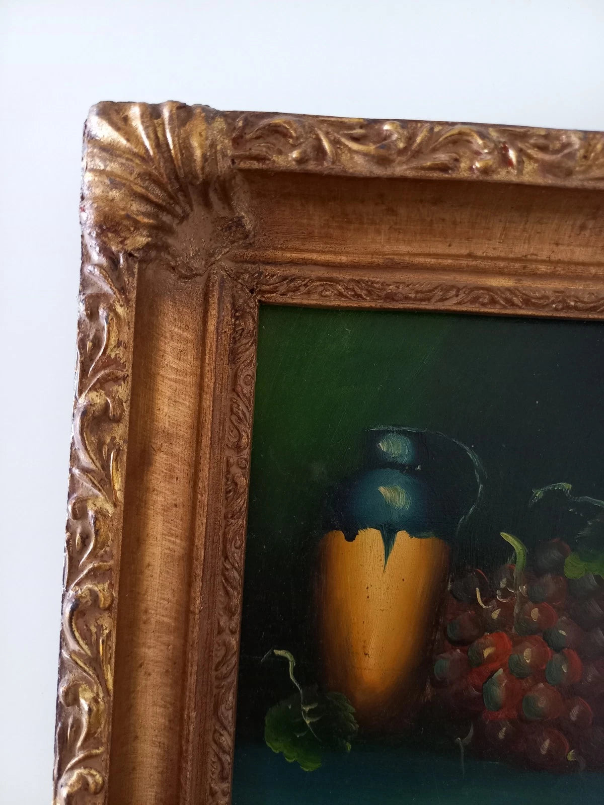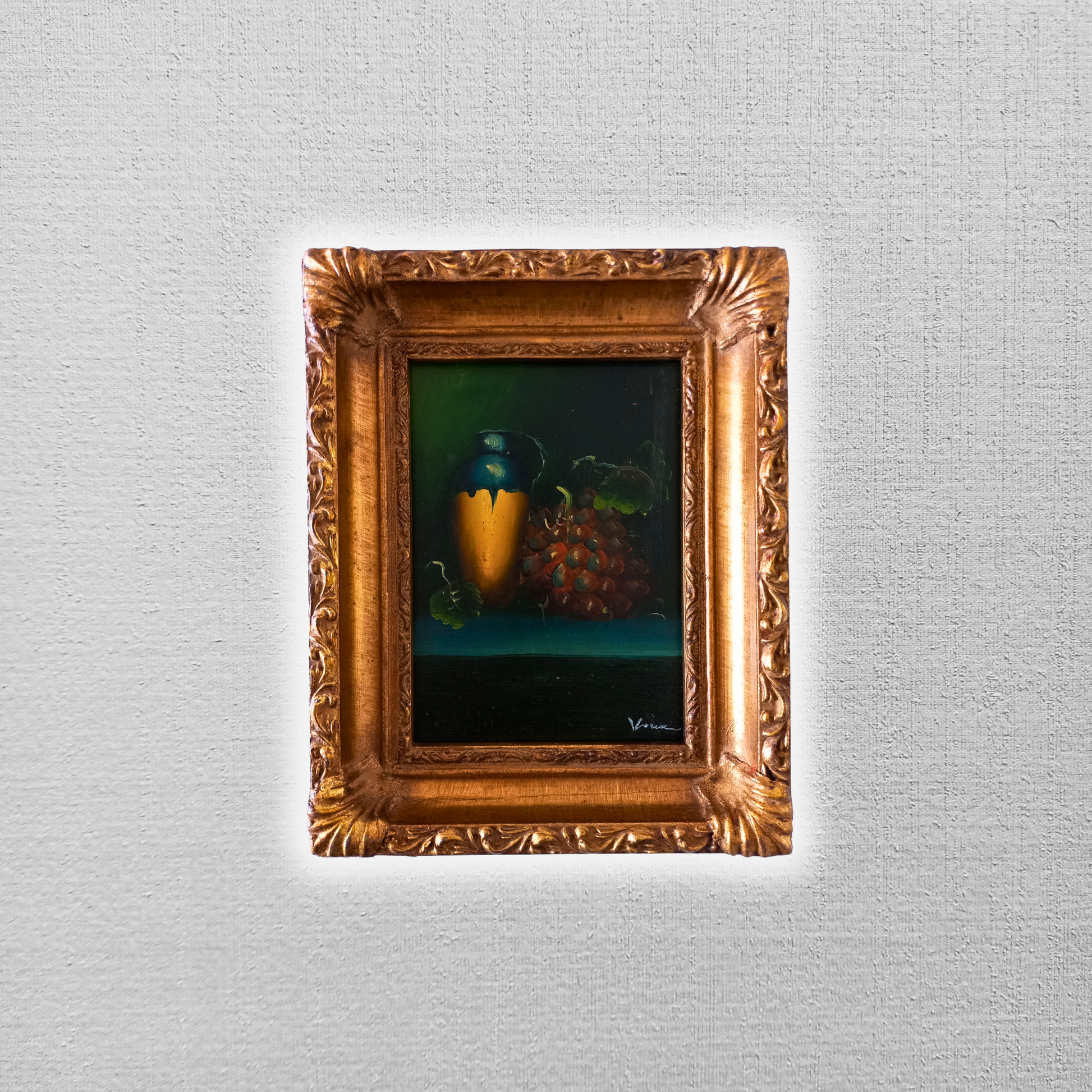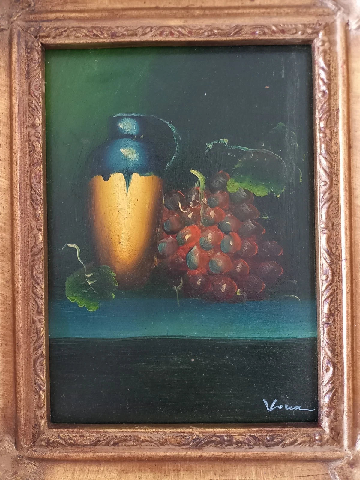 ORIGINAL Ölgemälde auf Karton inkl. Rahmen | Stillleben / Weintrauben | 21x26 cm | Signiert