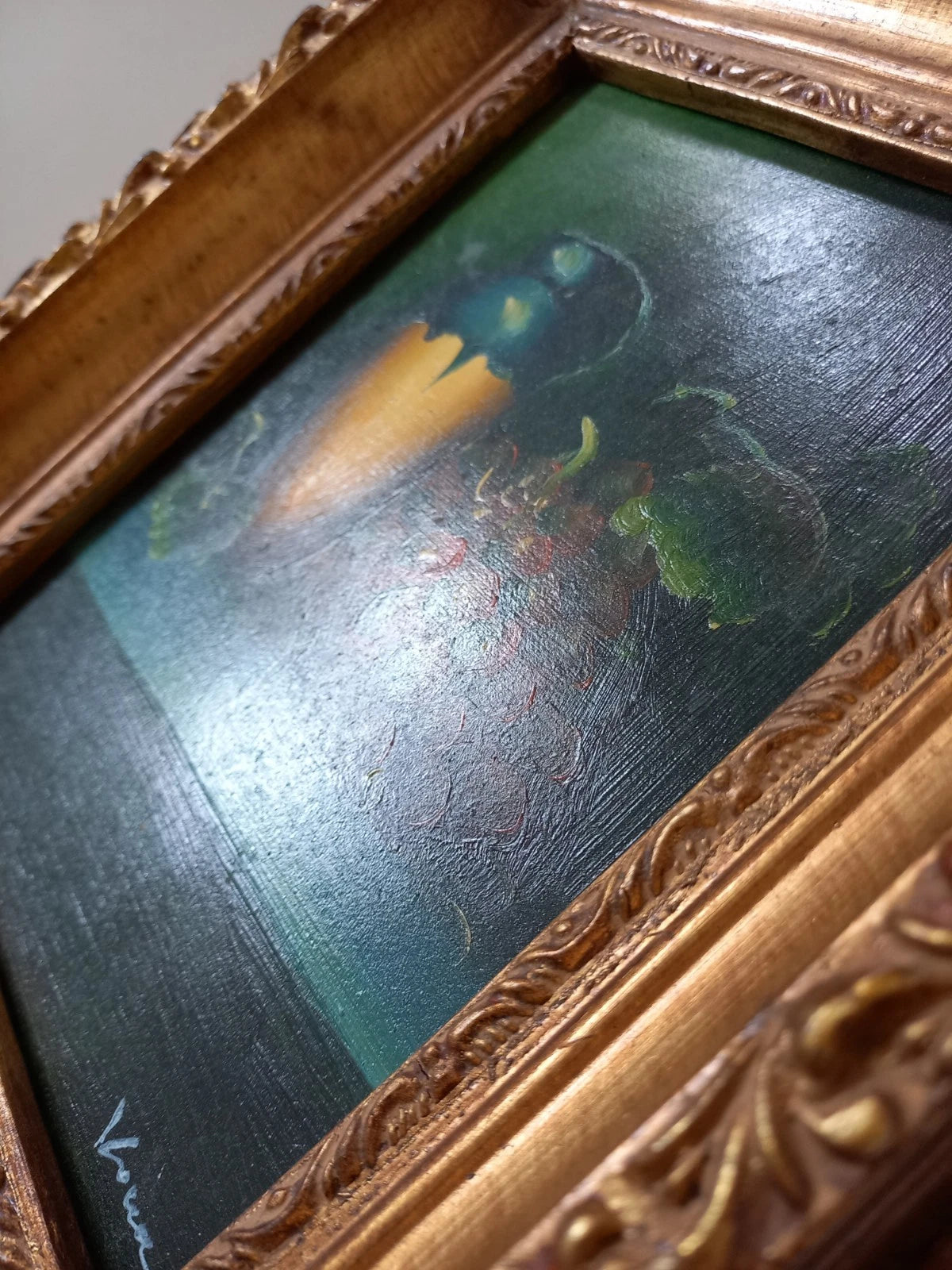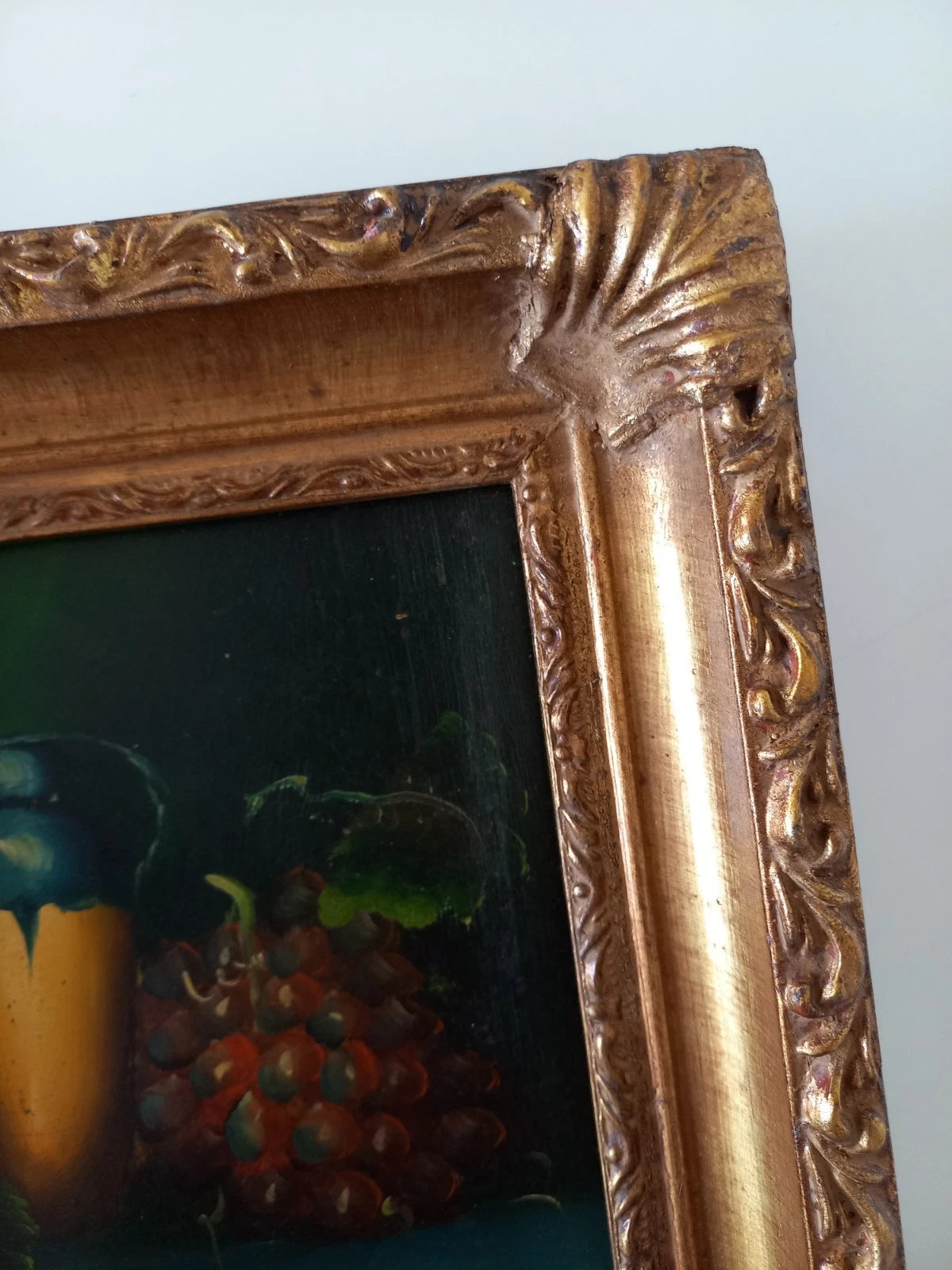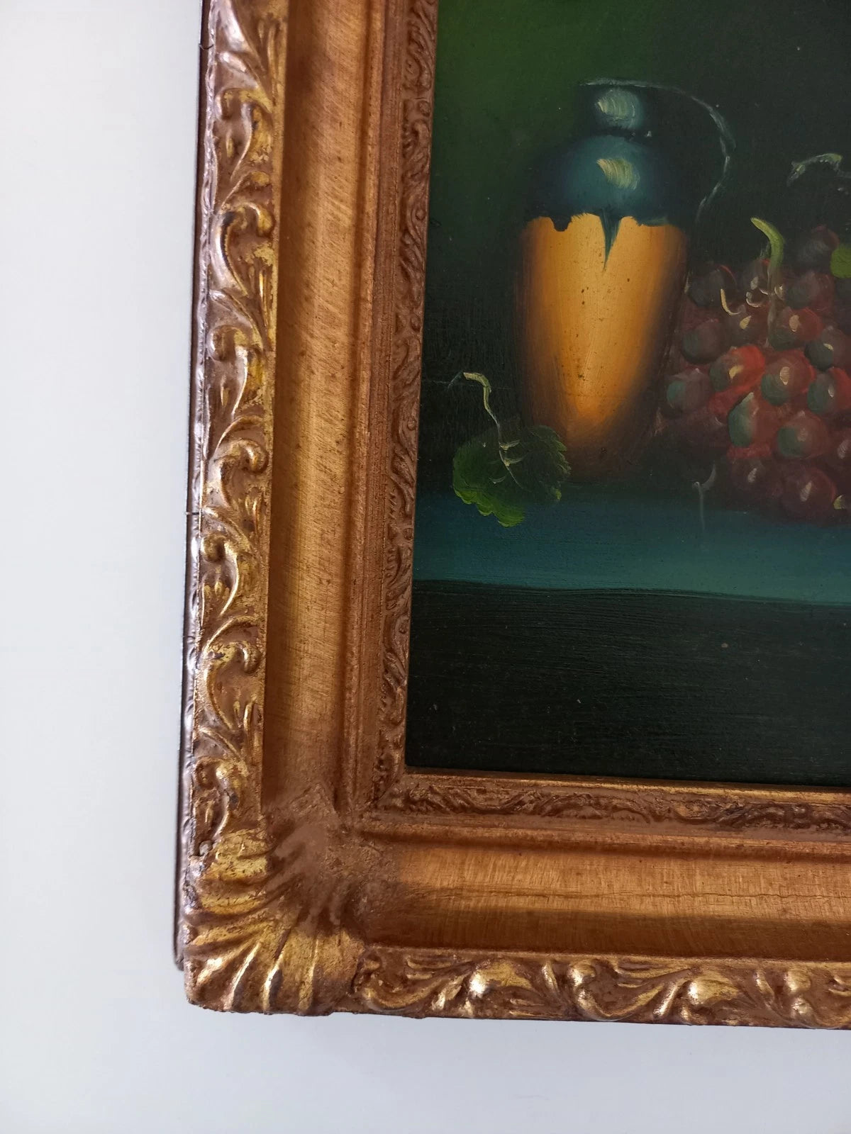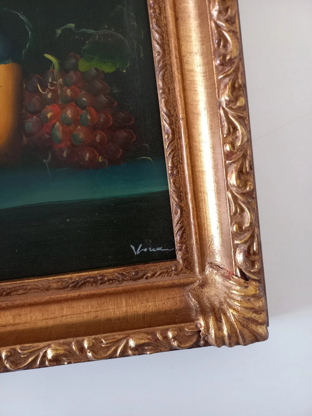 ORIGINAL Ölgemälde auf Karton inkl. Rahmen | Stillleben / Weintrauben | 21x26 cm | Signiert