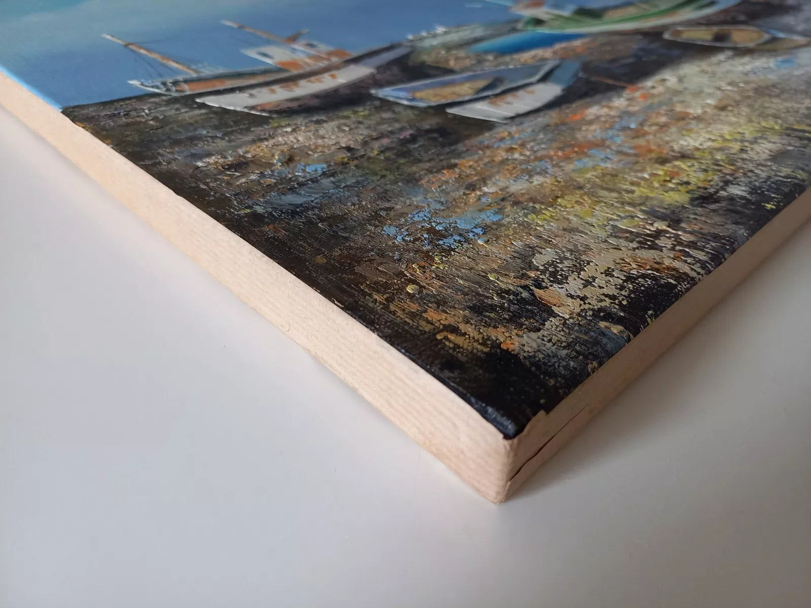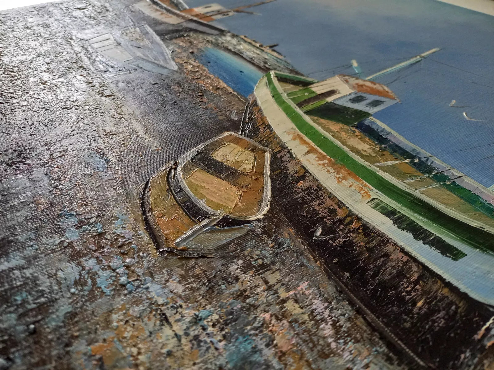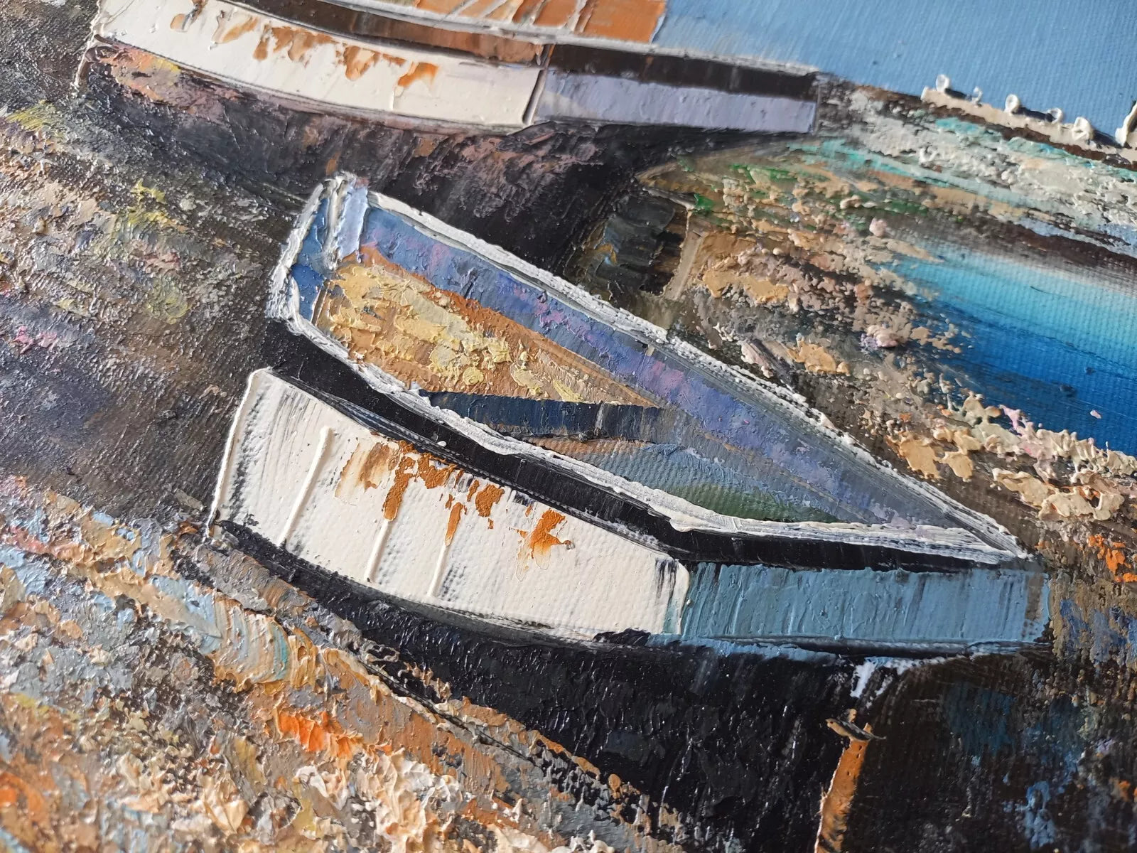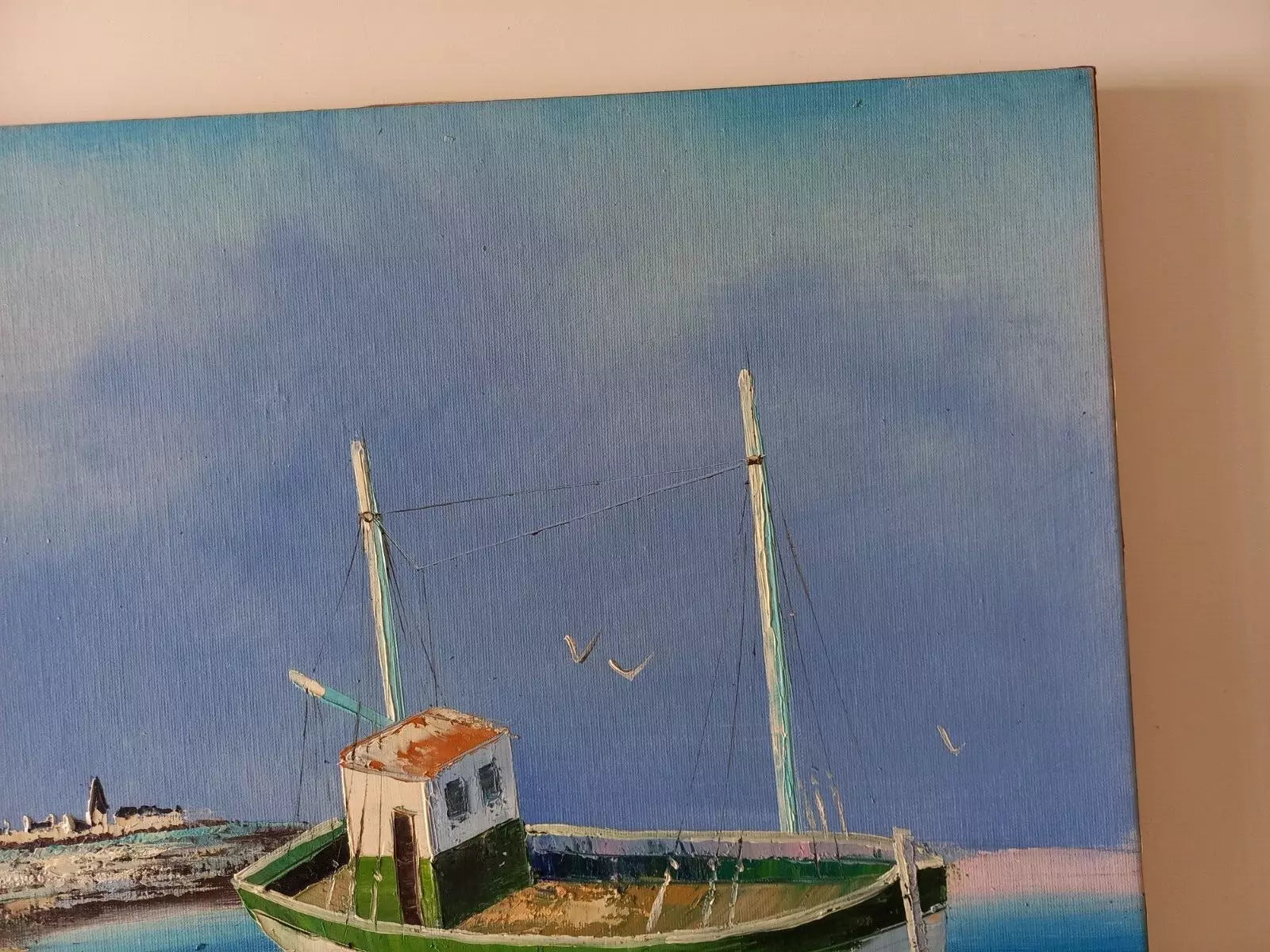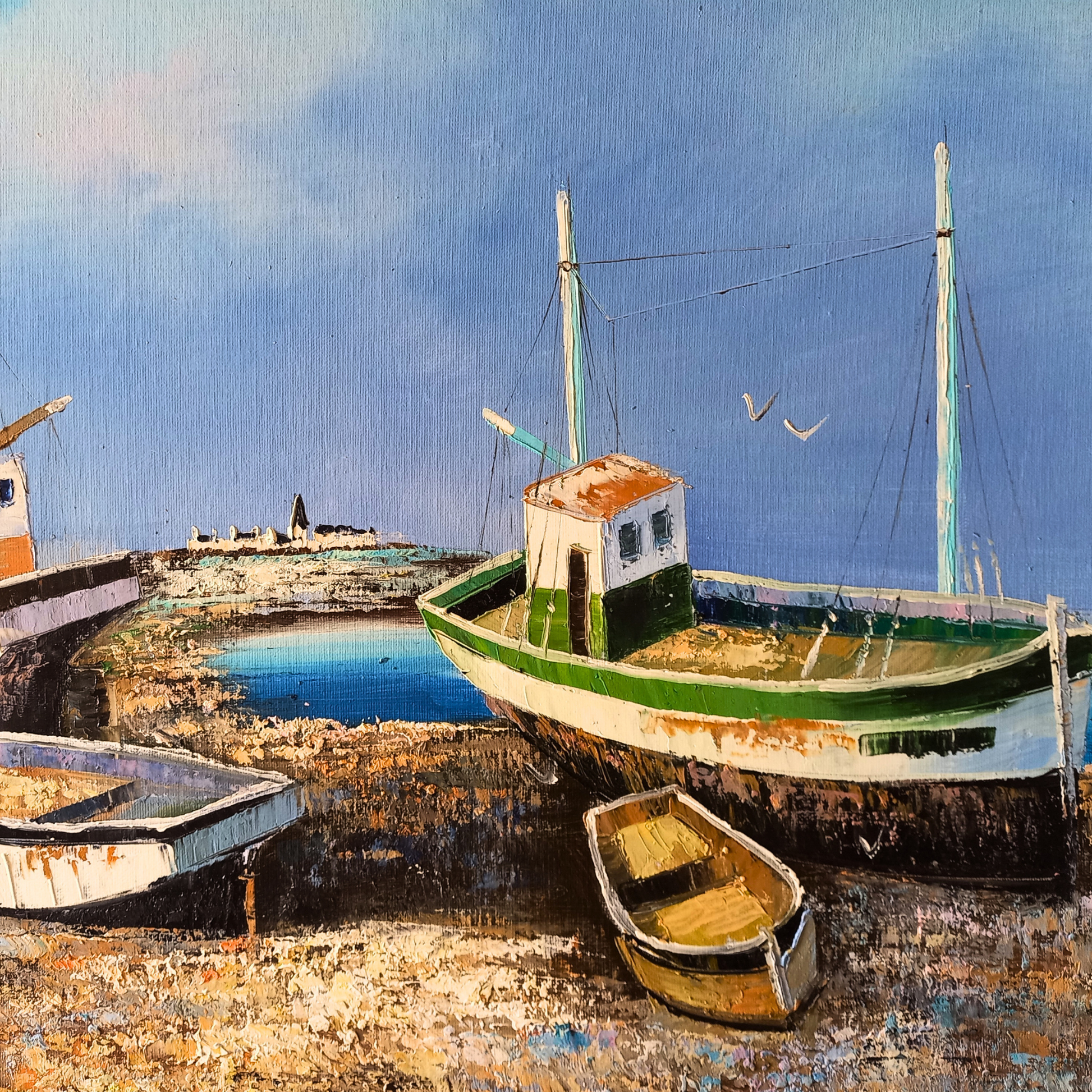 ORIGINAL Ölgemälde auf Leinwand | Fischerboote in der Bretagne / Frankreich | Signiert: TOUAR