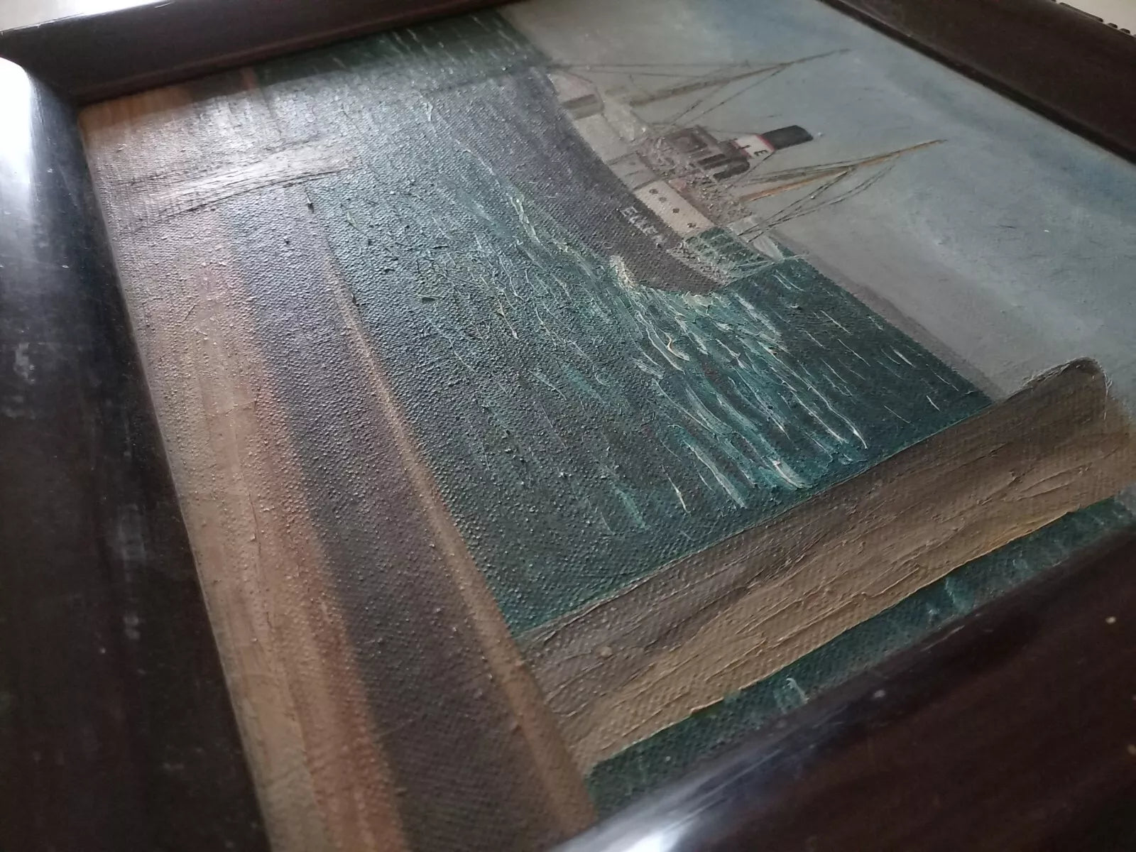 ORIGINAL Ölgemälde auf Leinwand inkl. Rahmen | Dampfschiff "Ellen" beim Anlegen | 35x32 cm
