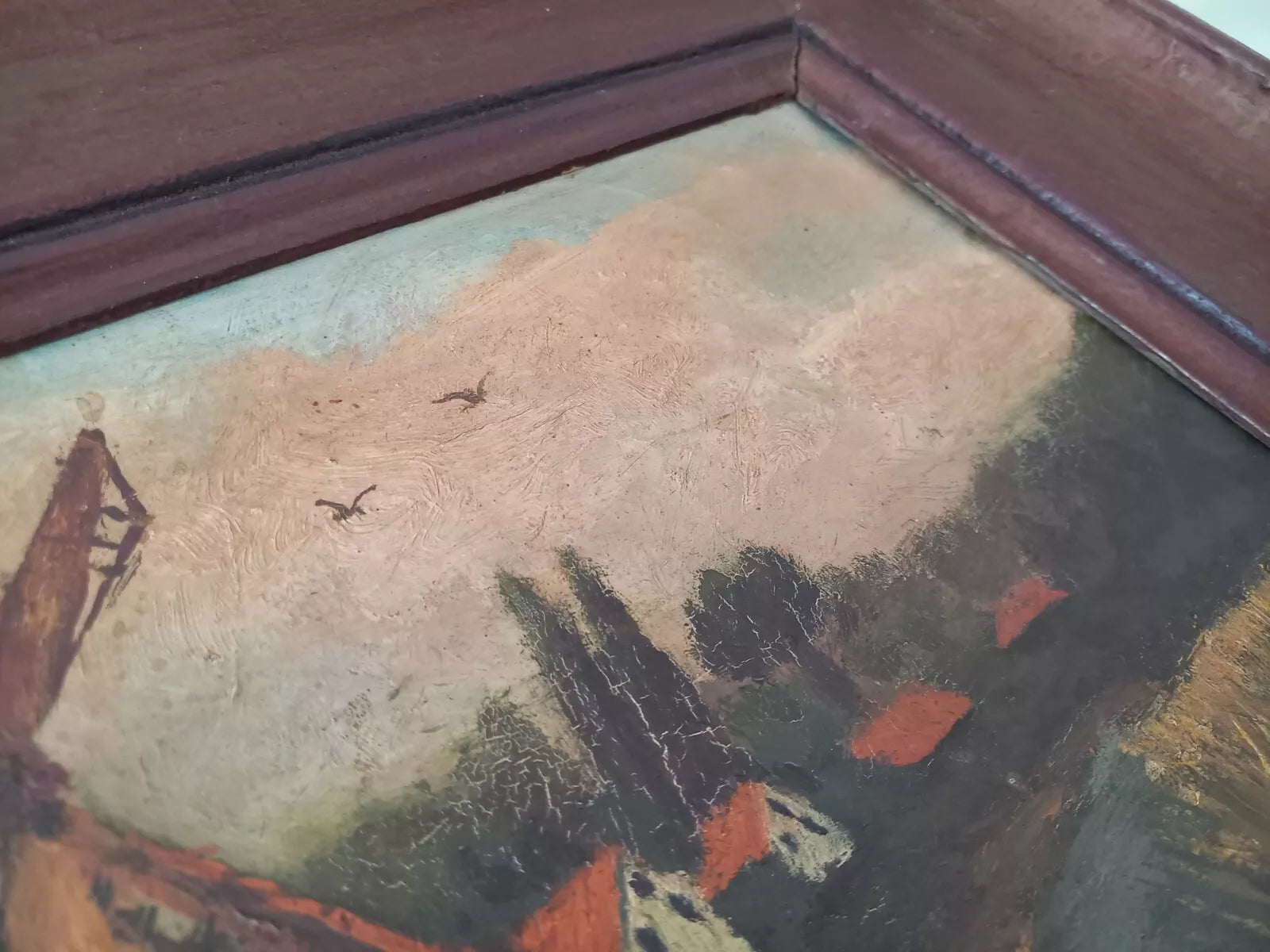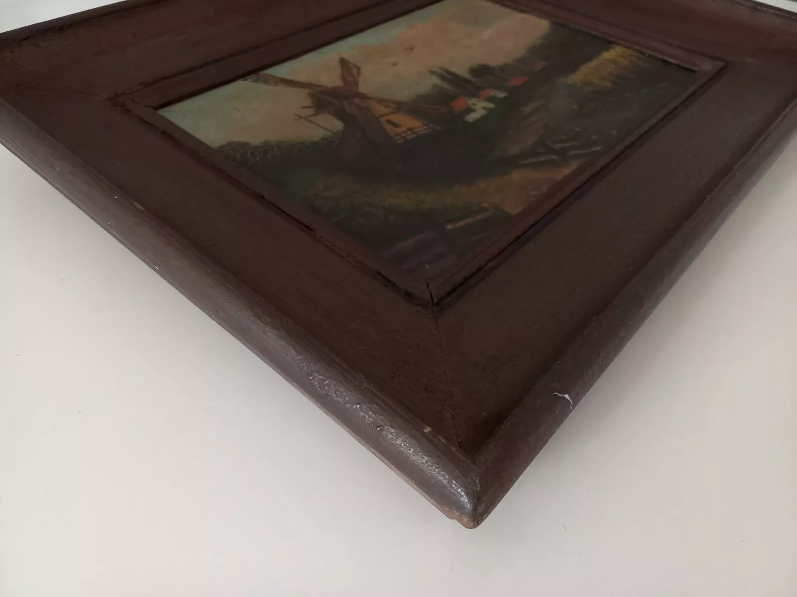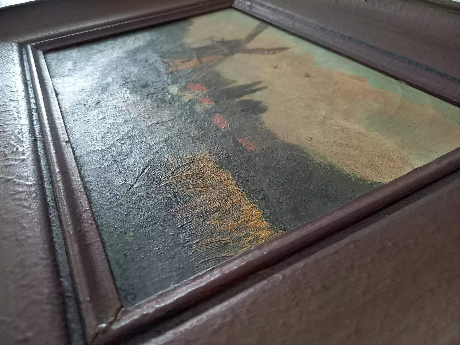 ORIGINAL Ölgemälde auf Leinwand inkl. Rahmen | Landschaft / Windmühle | 44x34 cm | Signiert