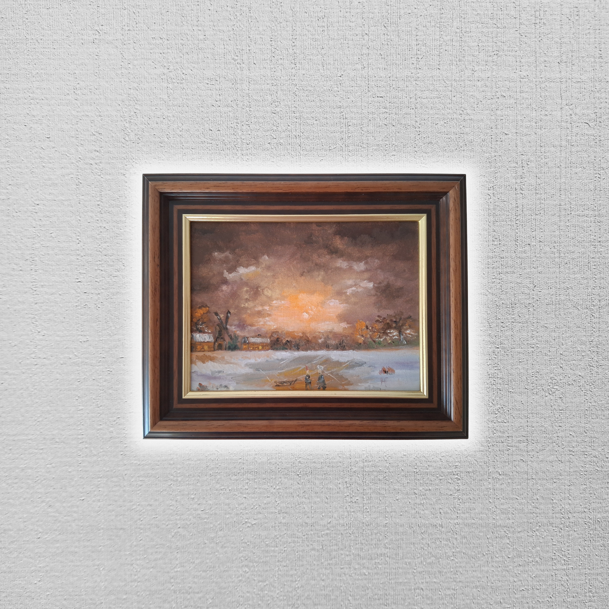 ORIGINAL Ölgemälde auf Leinwand inkl. Holzrahmen, Motiv: Winterlandschaft/Windmühle/Figuren, Signiert unten rechts: (unleserlich), Größen: ca. 33x27 cm (mit Rahmen), ca. 23x17 cm (ohne Rahmen, sichtbarer Teil des Gemäldes), Zustand siehe Fotos (Gebrauchsspuren am Rahmen) - aus tierfreiem Nichtraucherhaushalt! Fotos sind Bestandteil des Angebots!