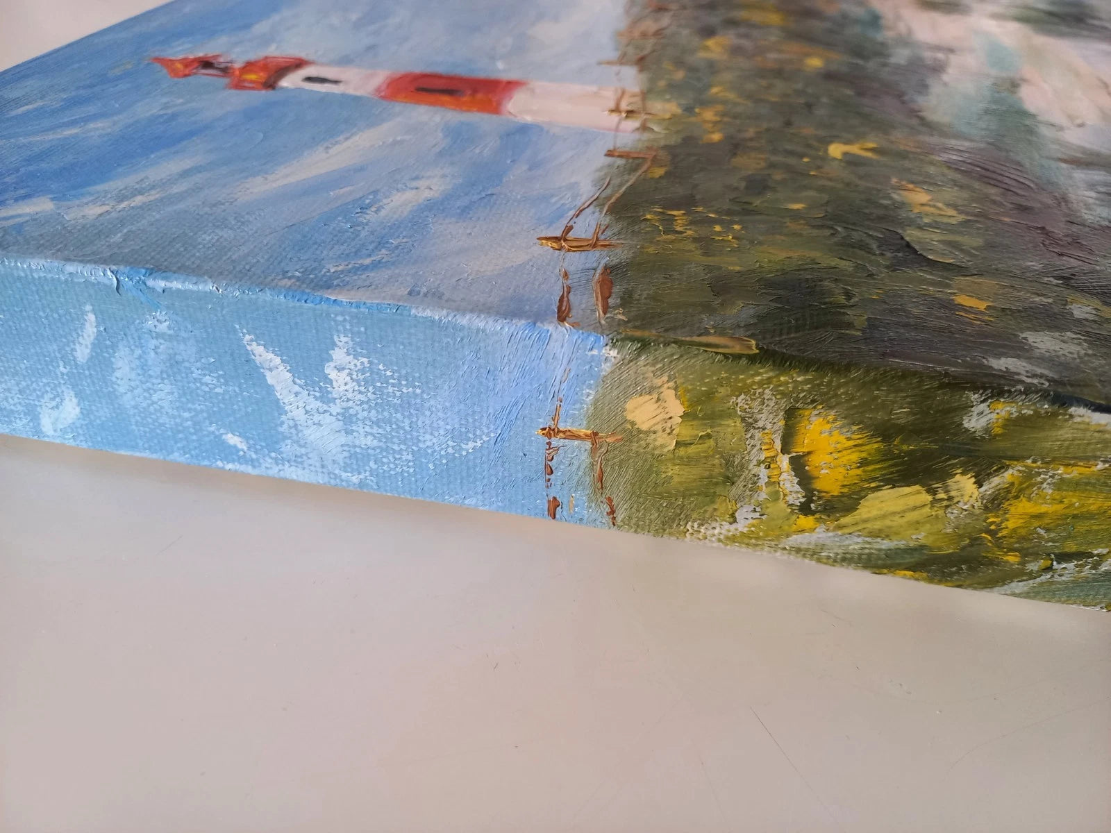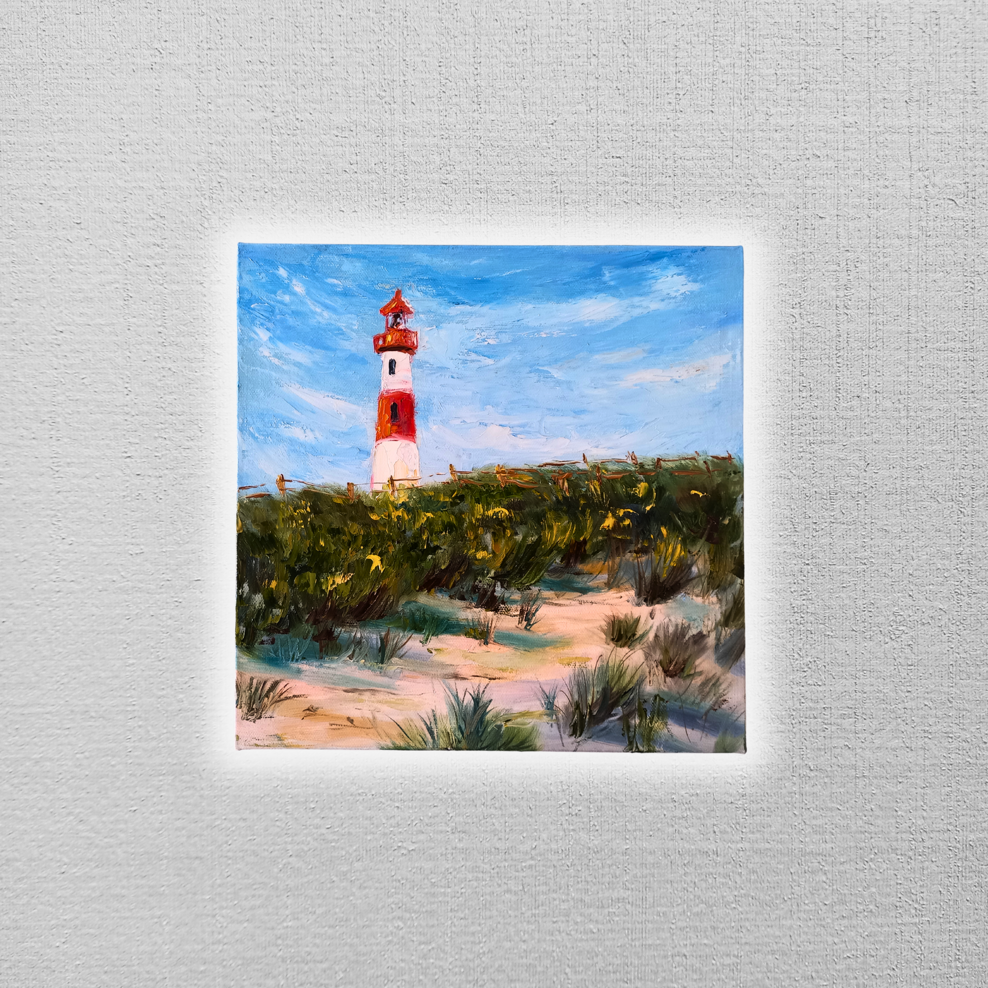 ORIGINAL Ölgemälde auf Leinwand | Leuchtturm / Landschaft / Natur | 30x30 cm | Signiert