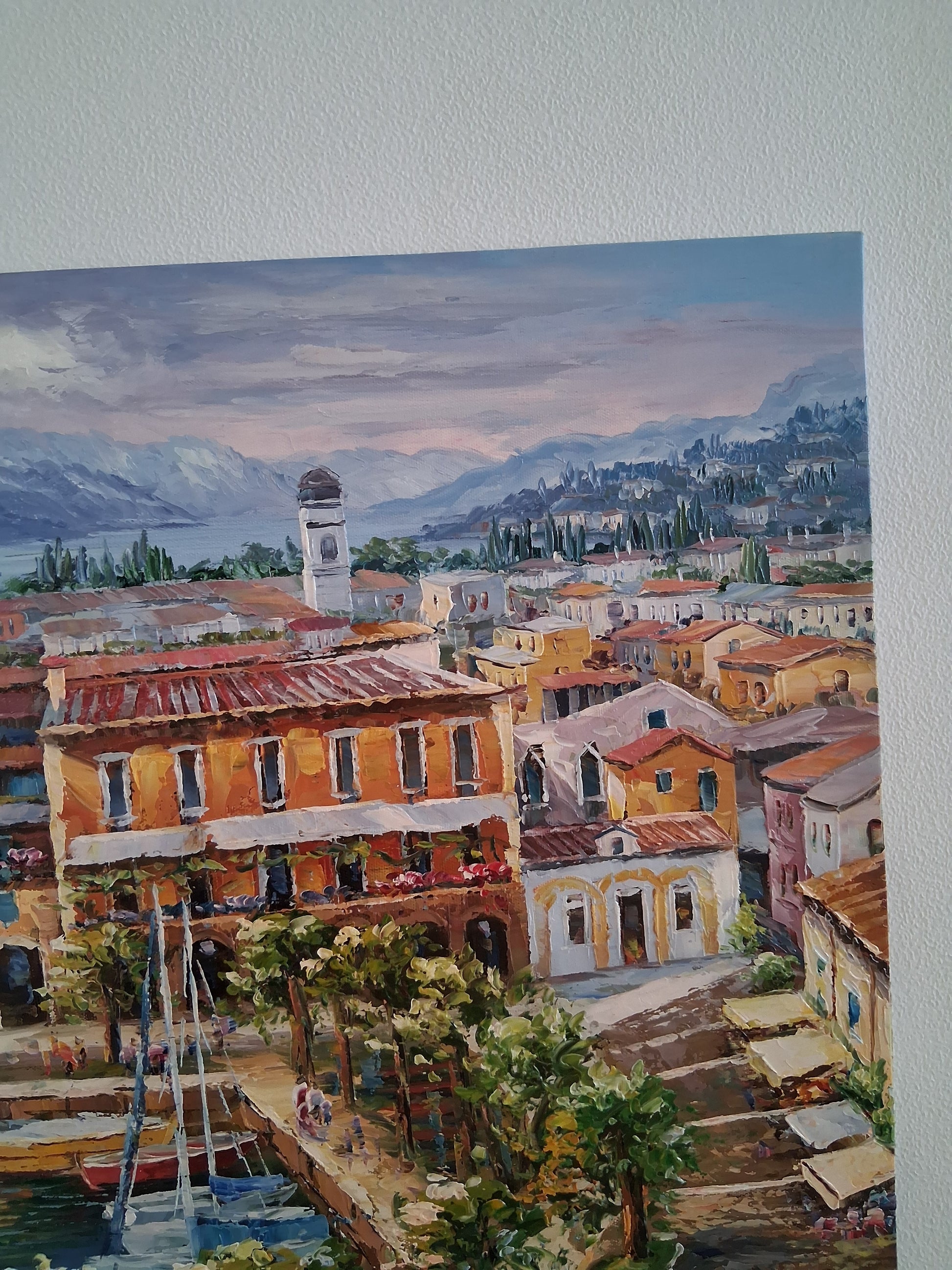 ORIGINAL Ölgemälde auf Leinwand | Torri del Benaco / Gardasee / Italien | 70x50 cm | Signiert: STEFANI