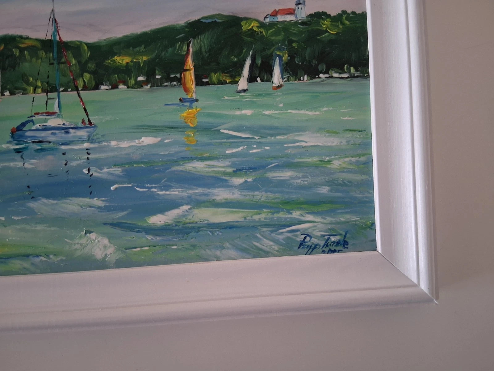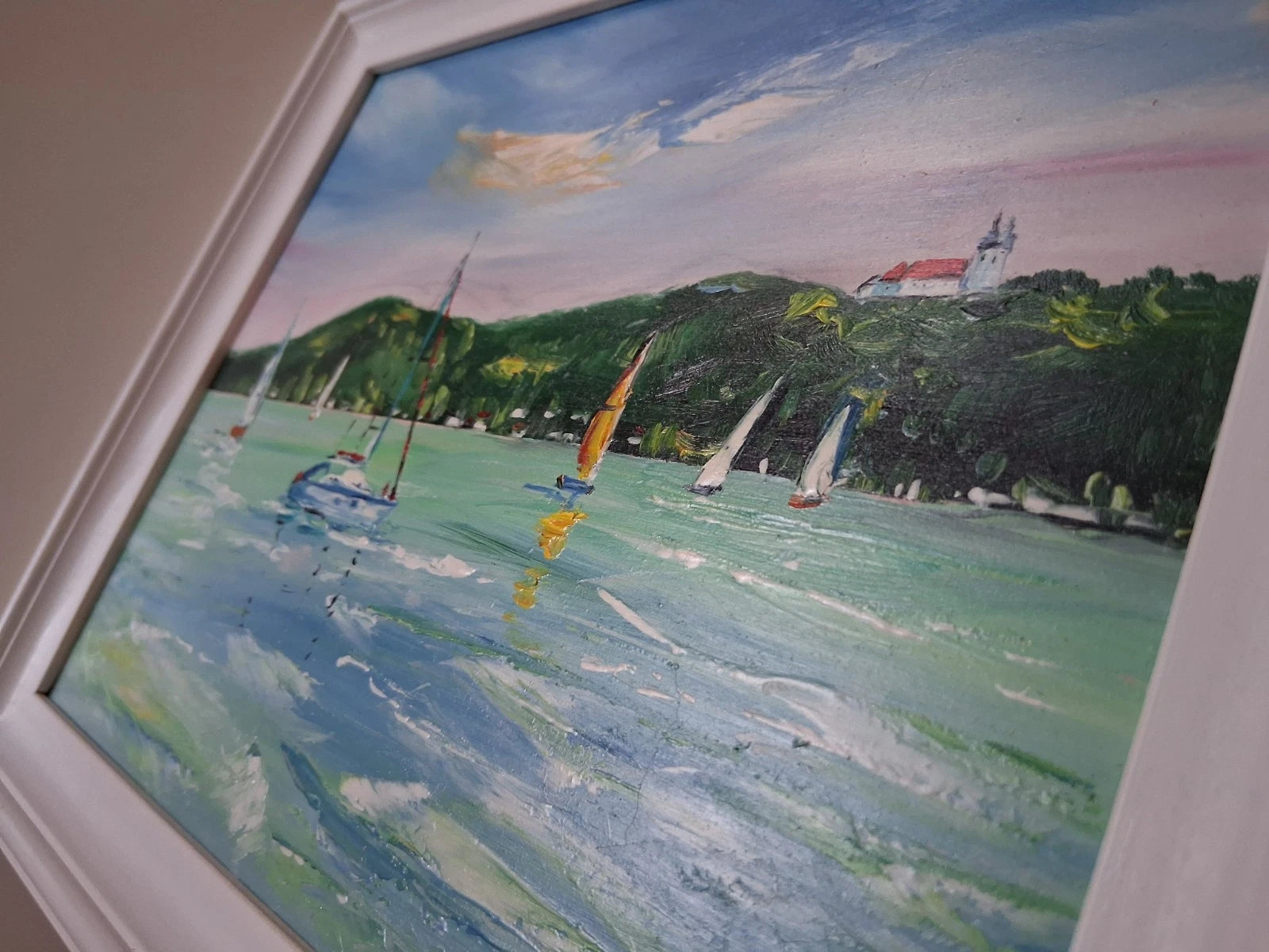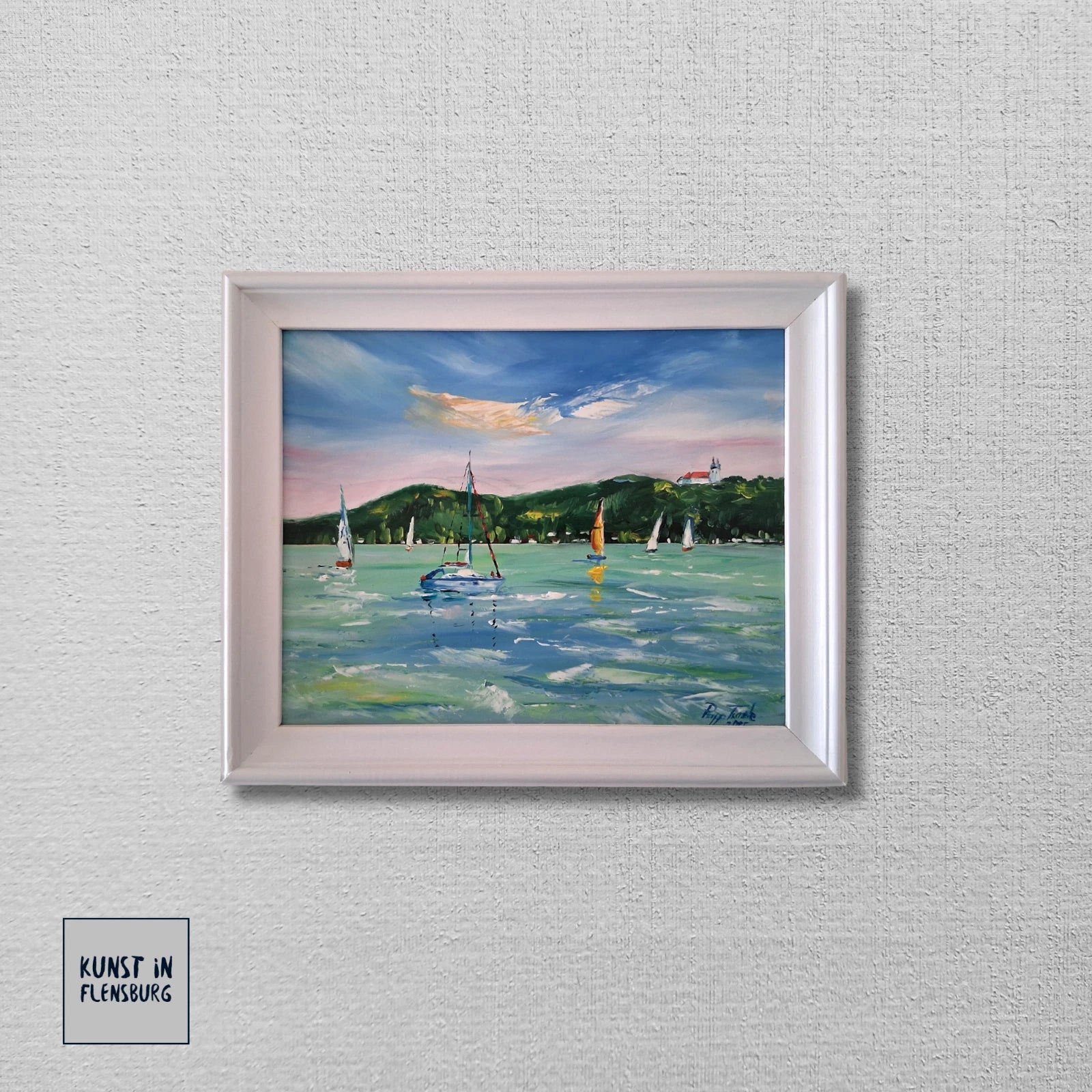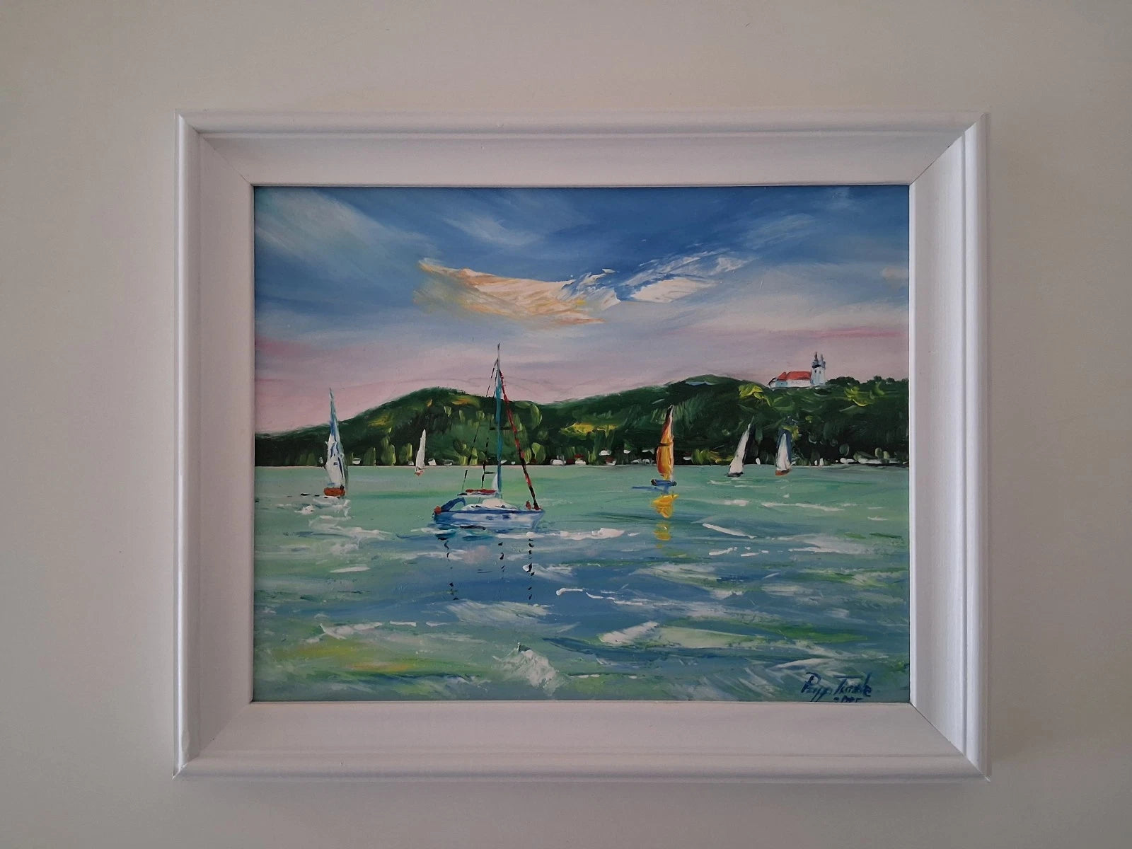 PAPP TÜNDE | Segelboote / Balaton / Tihany / Ungarn | ORIGINAL Ölgemälde auf Karton inkl. Rahmen