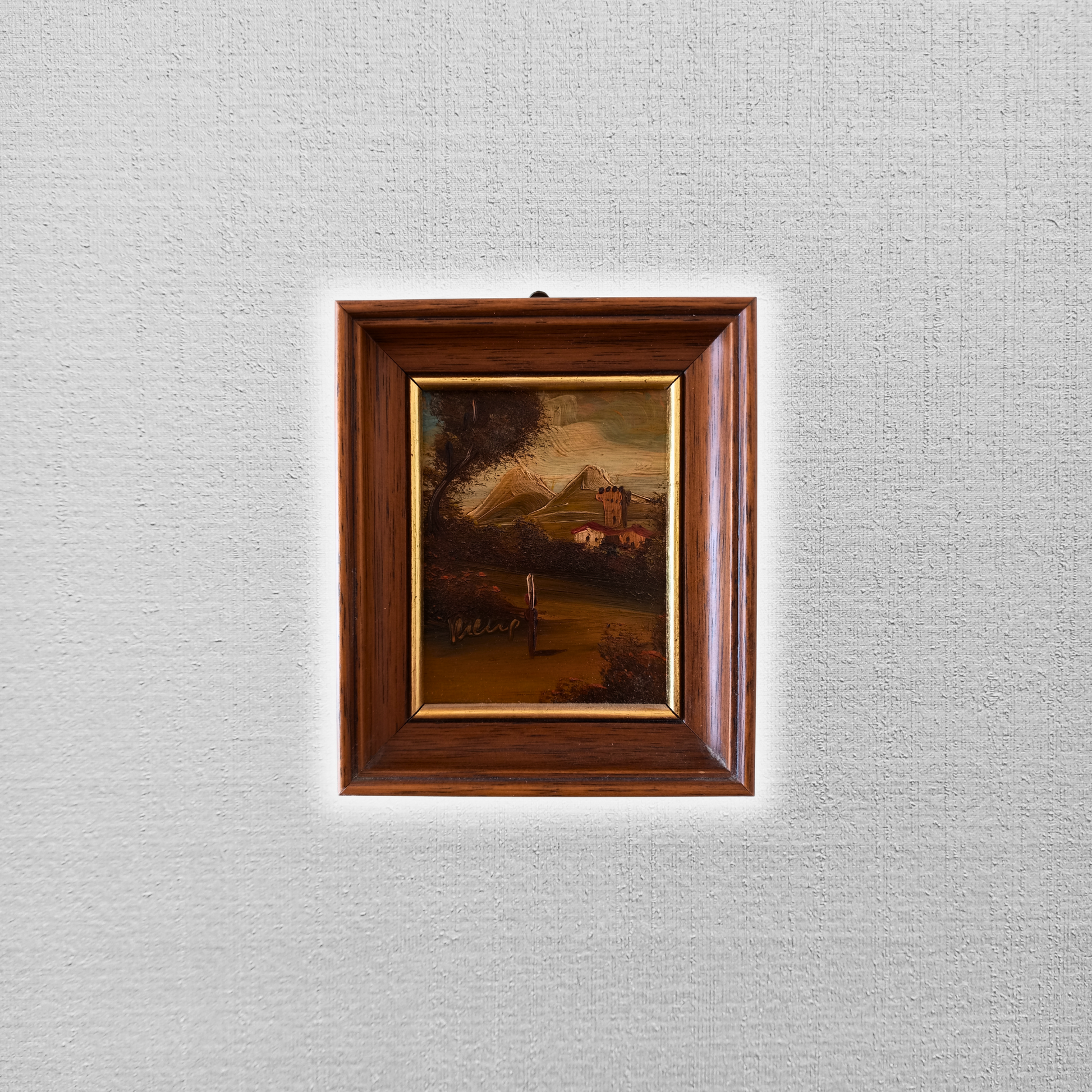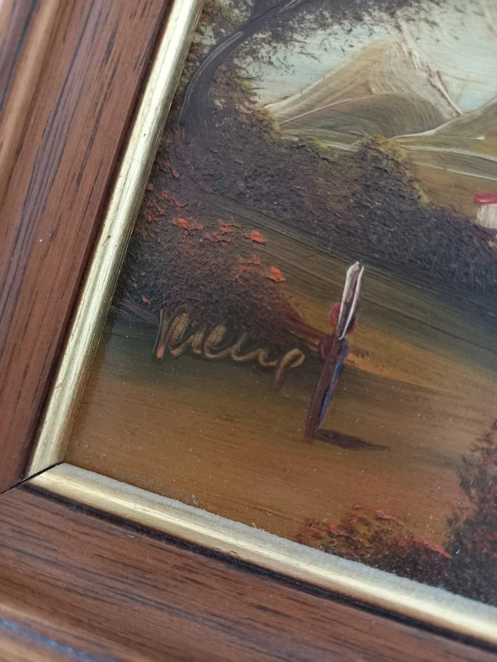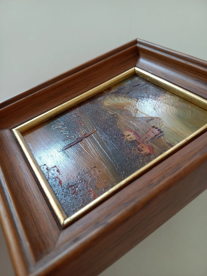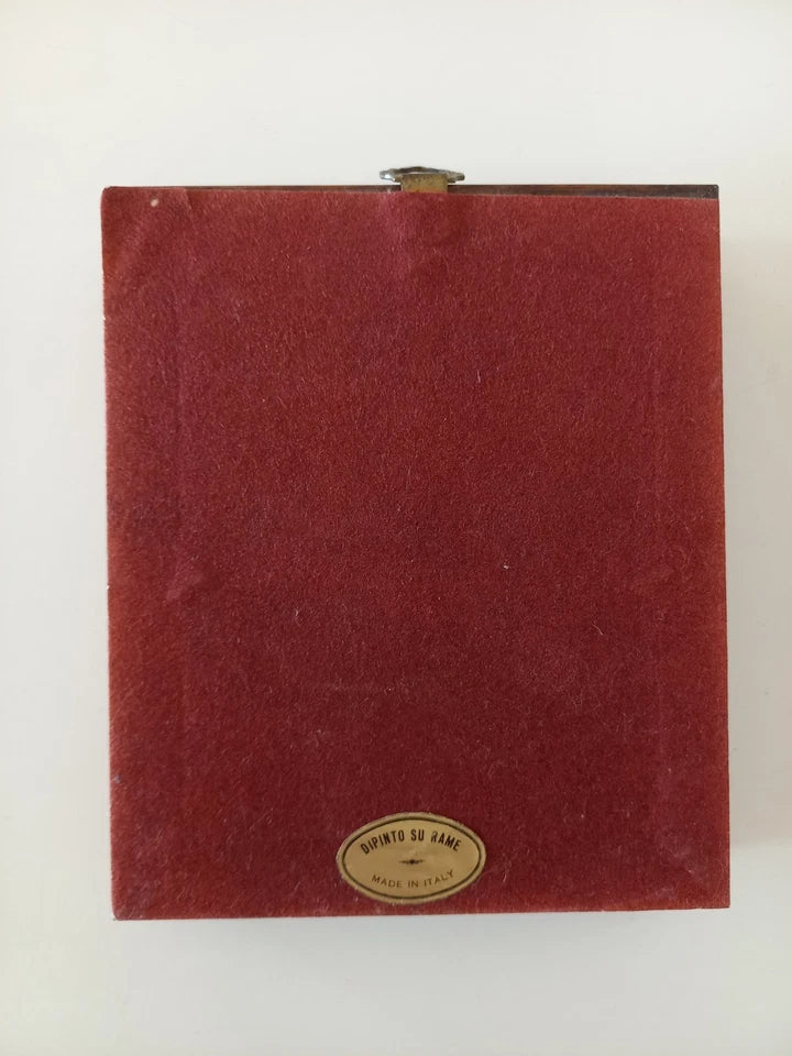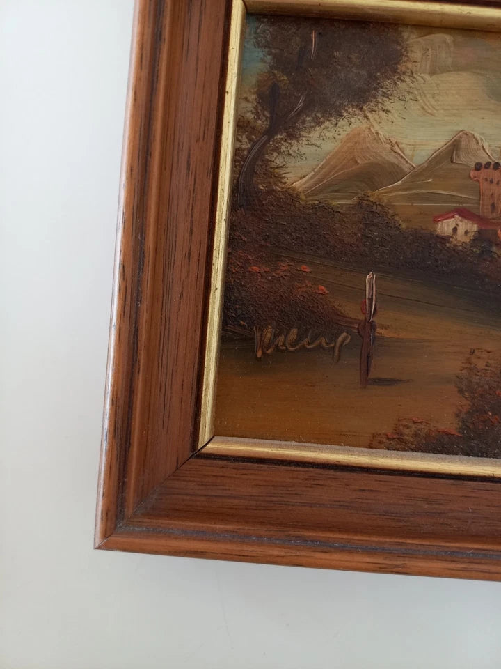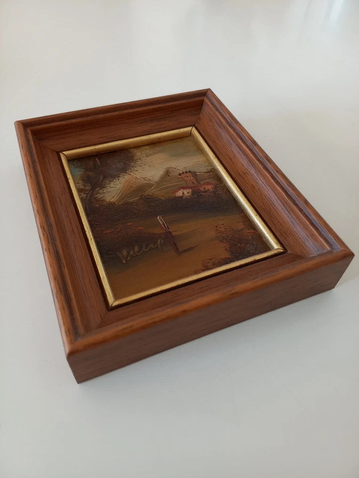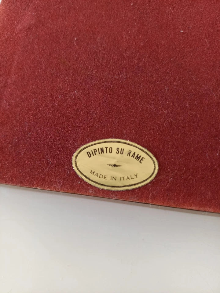 ORIGINAL Ölgemälde auf Kupferplatte inkl. Holzrahmen, Motiv: Landschaft/Burg/Italien, Signiert unten links: unleserlich / Made in Italy, Größen: ca. 10,5x12,5 cm (mit Rahmen) / ca. 6,5x8,5 cm (ohne Rahmen, sichtbarer Teil des Gemäldes), Zustand dem Alter entsprechend (Gebrauchsspuren am Rahmen -> siehe Fotos) - aus tierfreiem Nichtraucherhaushalt! Fotos sind Bestandteil des Angebots!