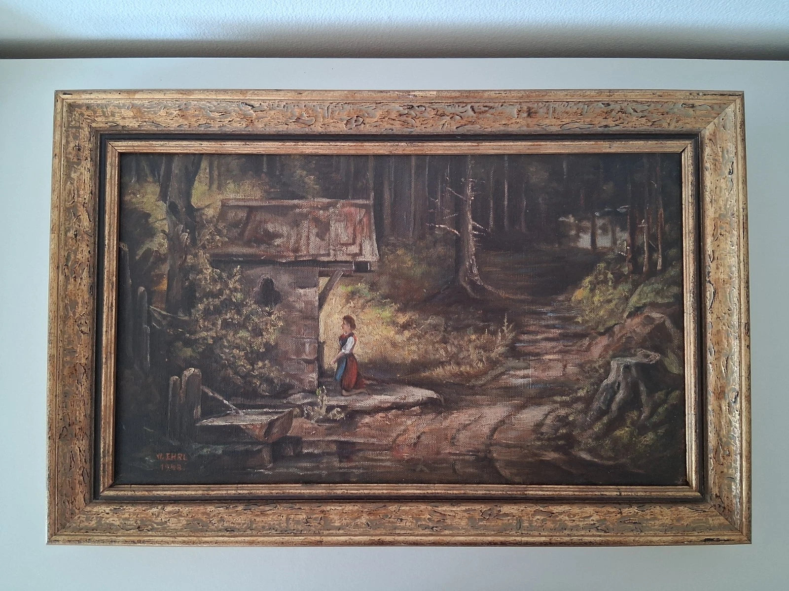ORIGINAL Ölgemälde auf Leinwand inkl. Holzrahmen, Motiv: Kapelle im Wald, Signiert unten links: W. Ehrl (1948), Größen: ca. 51x33 cm (mit Rahmen), ca. 43x25 cm (ohne Rahmen, sichtbarer Teil des Gemäldes), Zustand siehe Beschreibung + Fotos - aus tierfreiem Nichtraucherhaushalt! Fotos sind Bestandteil des Angebots!