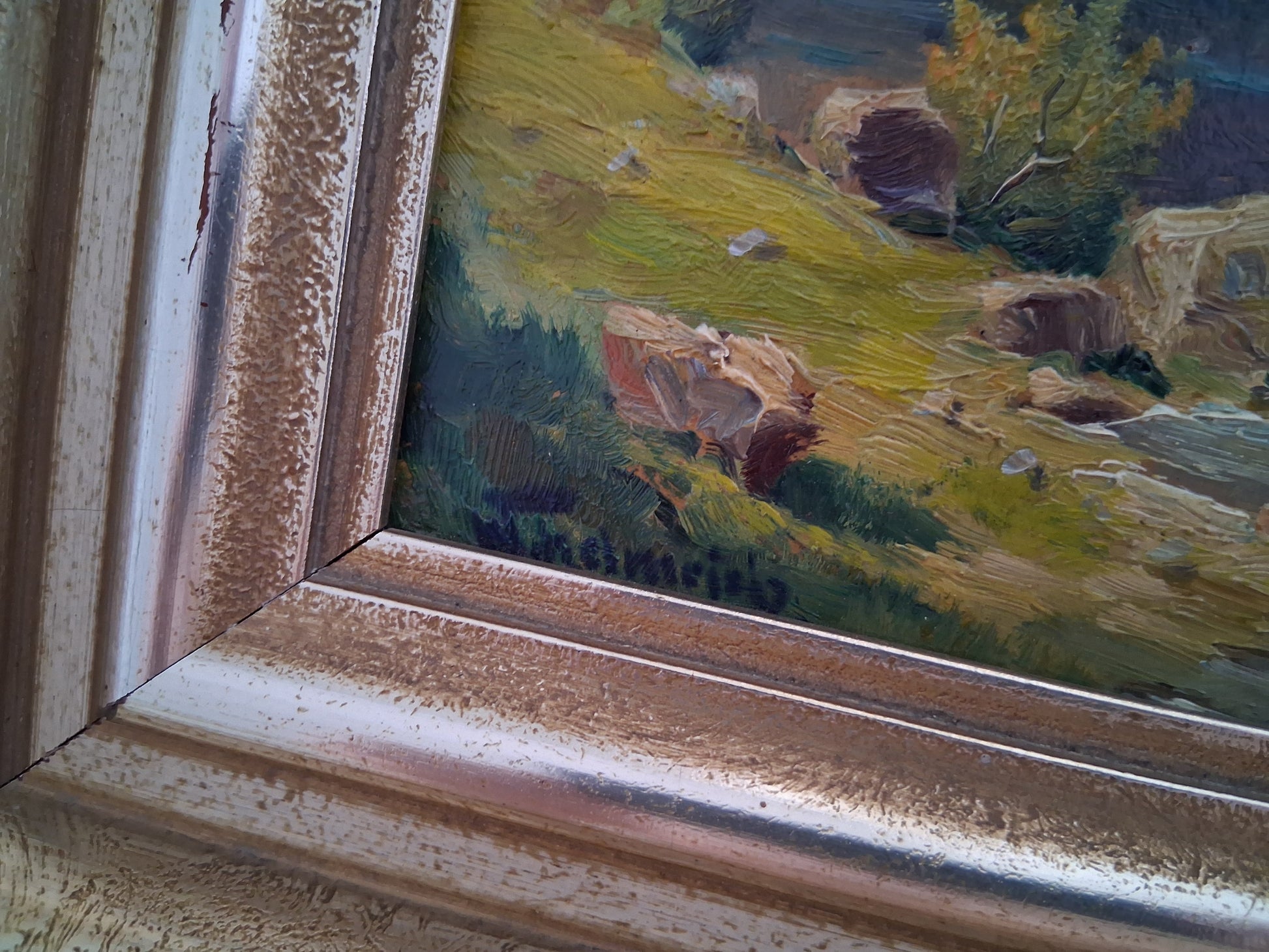 ORIGINAL Ölgemälde auf Karton inkl. Holzrahmen, Motiv: Am Königssee vom Malerwinkel, Signiert unten links: Walter Helmrich, Größen: ca. 43x36 cm (mit Rahmen) / ca. 28,5x22 cm (ohne Rahmen, sichtbarer Teil des Gemäldes), Zustand dem Alter entsprechend -> Gebrauchsspuren am Rahmen (siehe Fotos) - aus tierfreiem Nichtraucherhaushalt! Fotos sind Bestandteil des Angebots!